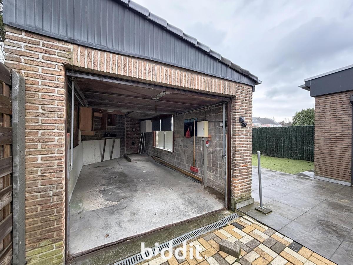 Halfopen bebouwing met oprit, tuin en afzonderlijke garage.