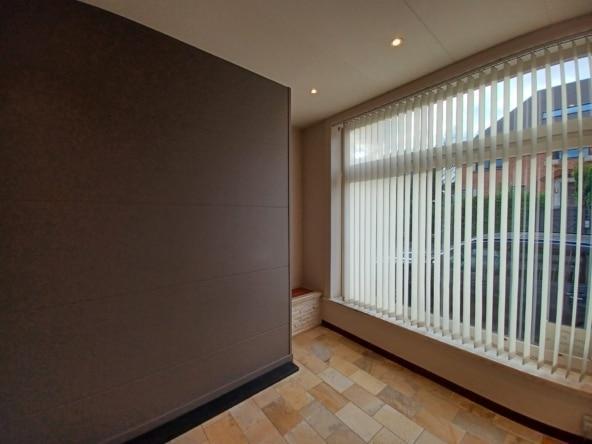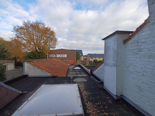A VENDRE – MAISON semi-mitoyenne avec parking (1 voiture), passage latéral, 2 chambres, grenier aménageable en 2 chambres supplémentaires, précédemment à usage de cabinet dentaire (possibilités multiples d’aménagements), à proximité immédiate de toutes les commodités du village de Dottignies