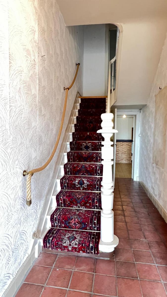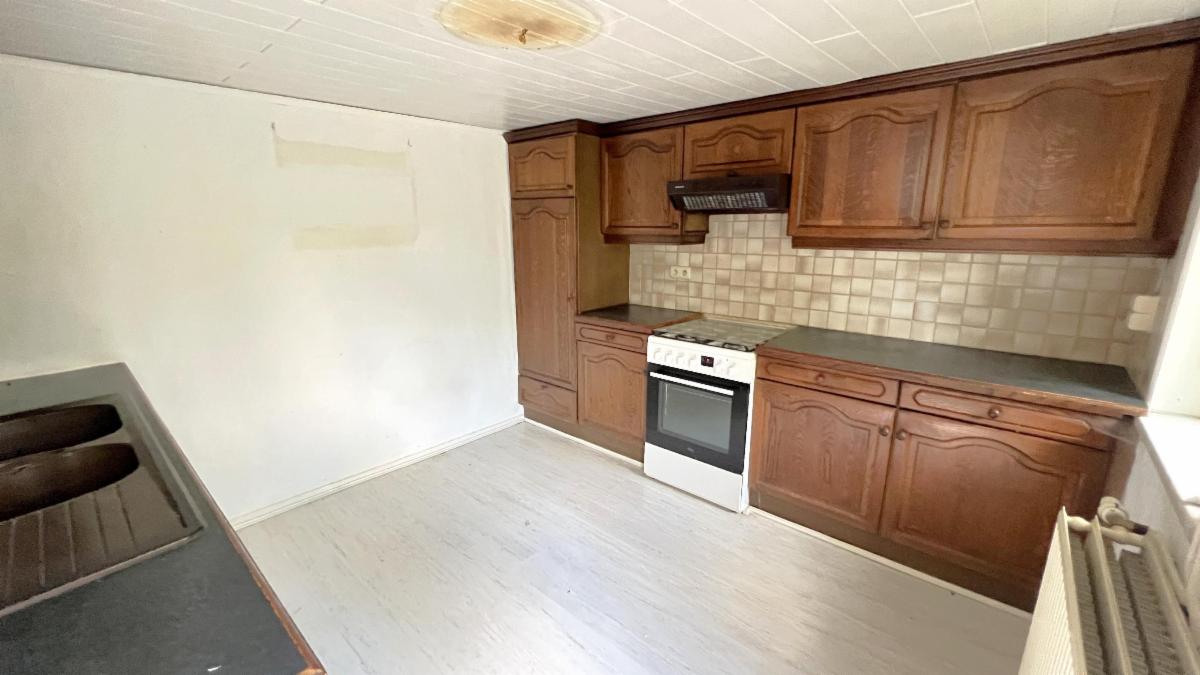 Indeling: inkom/gang, gezellige living met parketvloer, aparte eetplaats met toegang naar de veranda, ingerichte keuken. Op de tussenverdiep 1 kamer en op de eerste verdieping 2 ruime slaapkamers. De vaste trap naar de zolder biedt mogelijkheid om bijkomende kamers te maken.