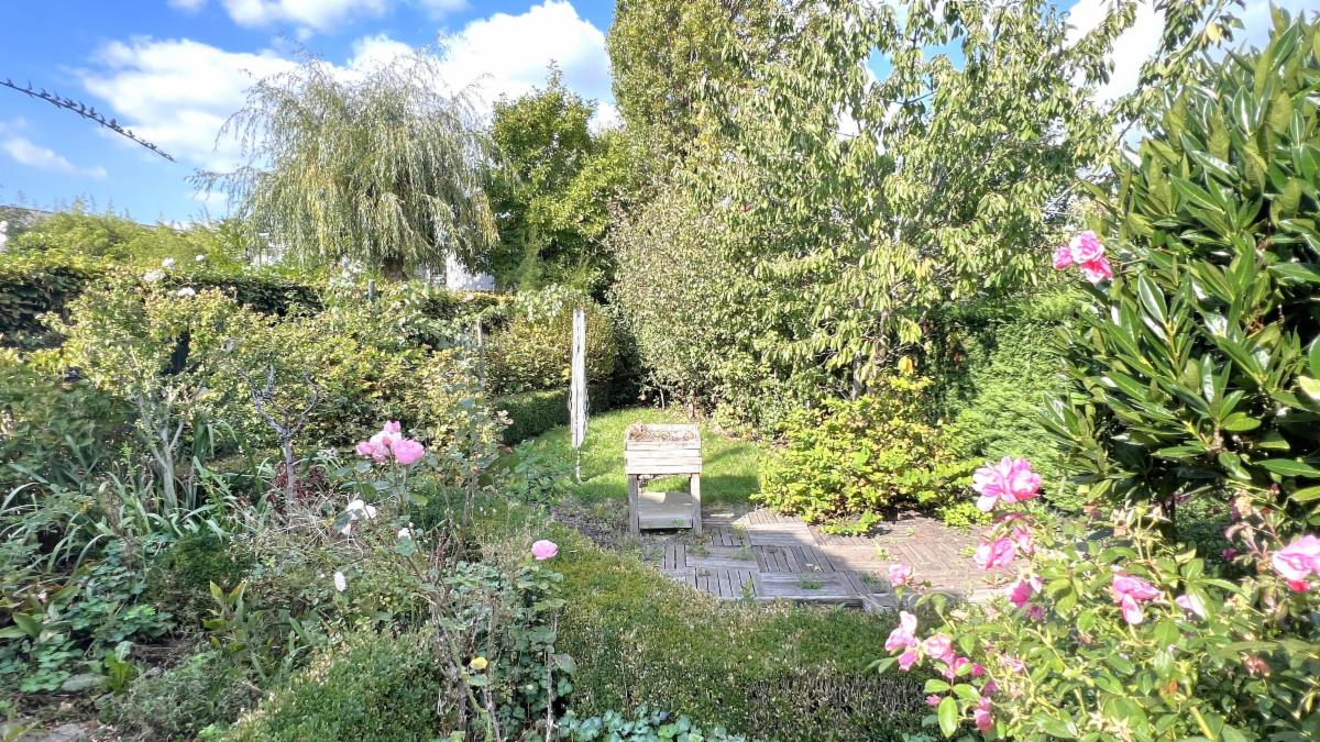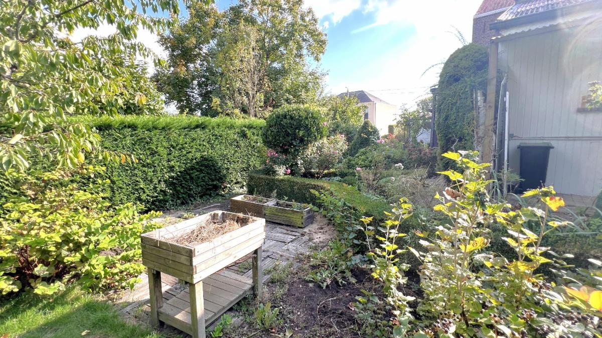 In het pittoreske Hakendover vinden we op enkele honderden meters van het dorpscentrum deze driegevelwoning met een garage en mooie siertuin op een perceel van 4a46ca.