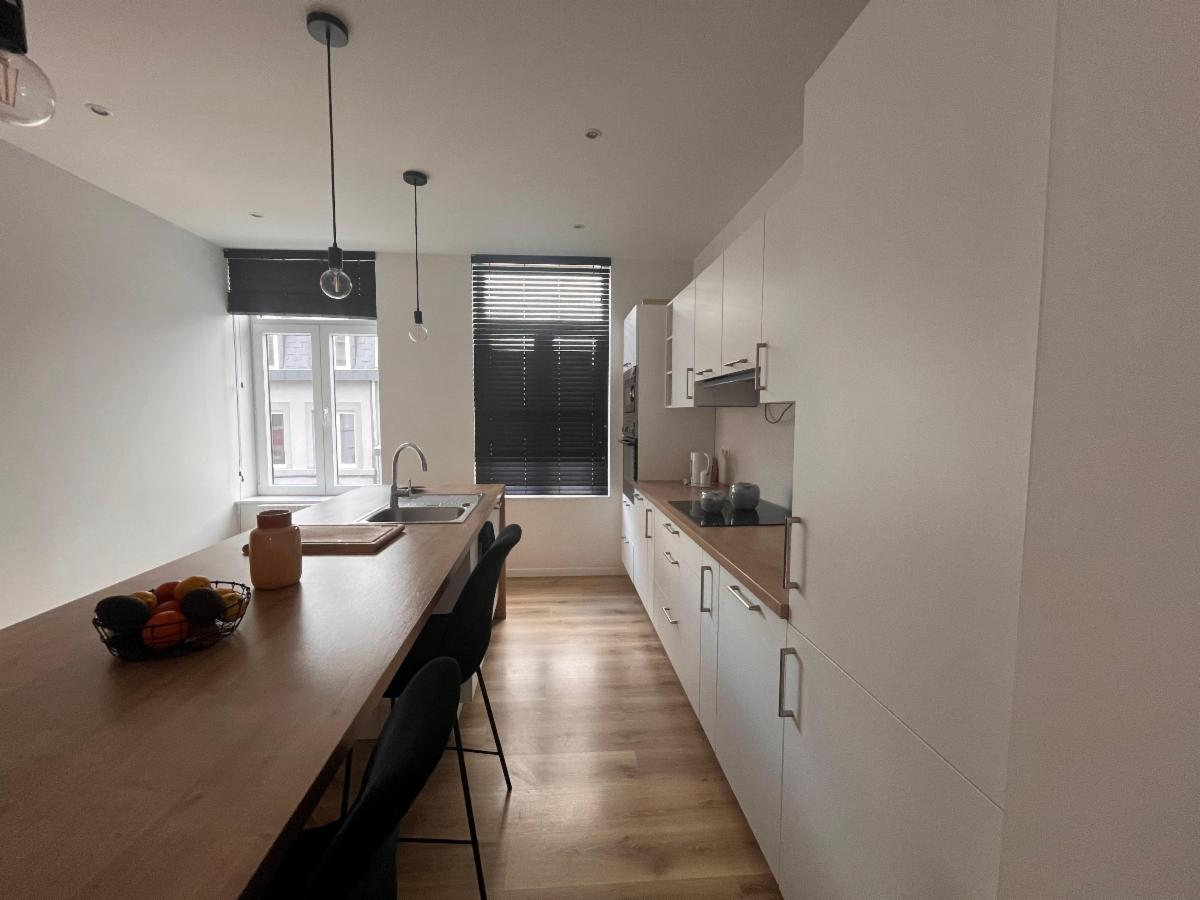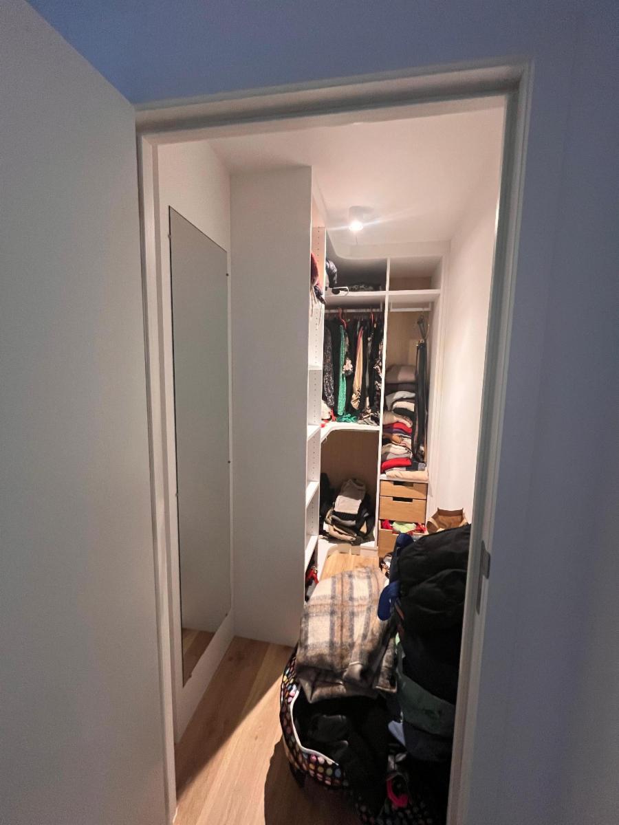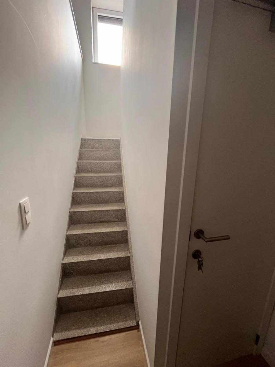 L'appartement se situe aux deuxième et troisième étage (mansardé). Il dispose d'une cuisine équipée avec un four, un micro-ondes, un frigo et un congélateur encastrés, de même qu'une taque de cuisson à induction. L'espace cuisine est ouvert et donne sur le salon.