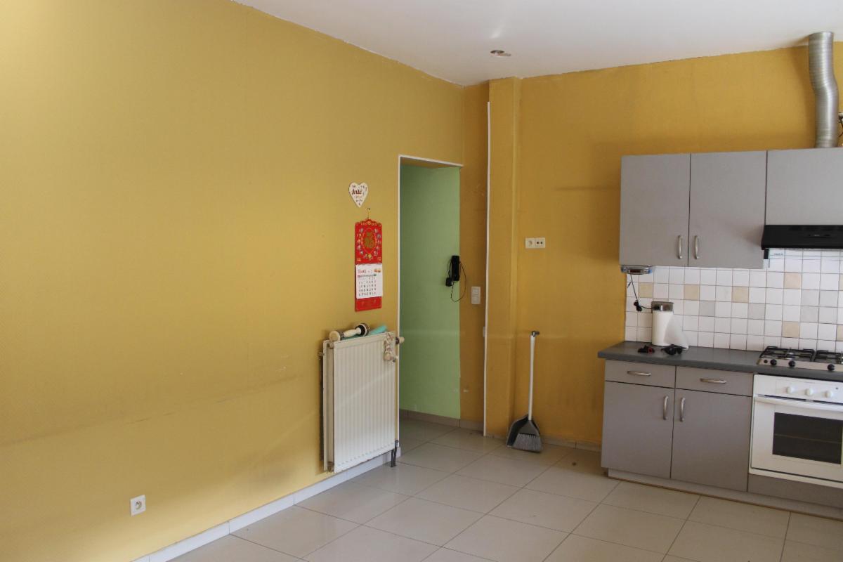 Au rez-de-chaussée : une pièce à usage de cuisine/salle à manger avec coin buanderie (pouvant être aménagé en un WC) et une pièce à usage de salon.