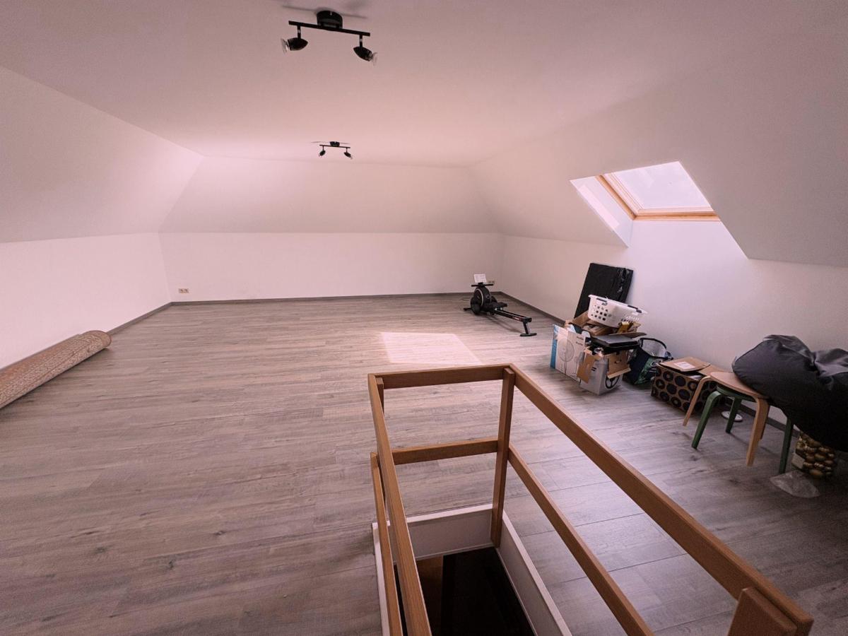 Op de eerste verdieping bevinden zich drie slaapkamers, een badkamer en extra bergruimte. De tweede verdieping (vaste trap) biedt een polyvalente ruimte, ideaal als extra slaapkamer of bureau.