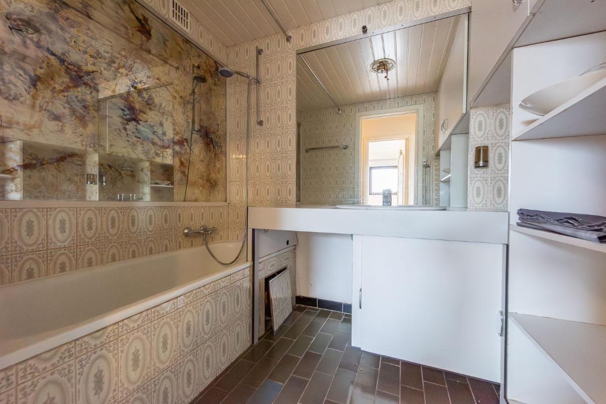 Op de 1e verdieping bevindt zich een 2e zeer ruim appartement dat nog te renoveren is, maar veel potentieel heeft.