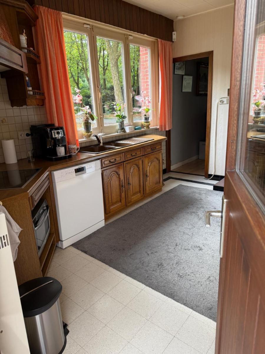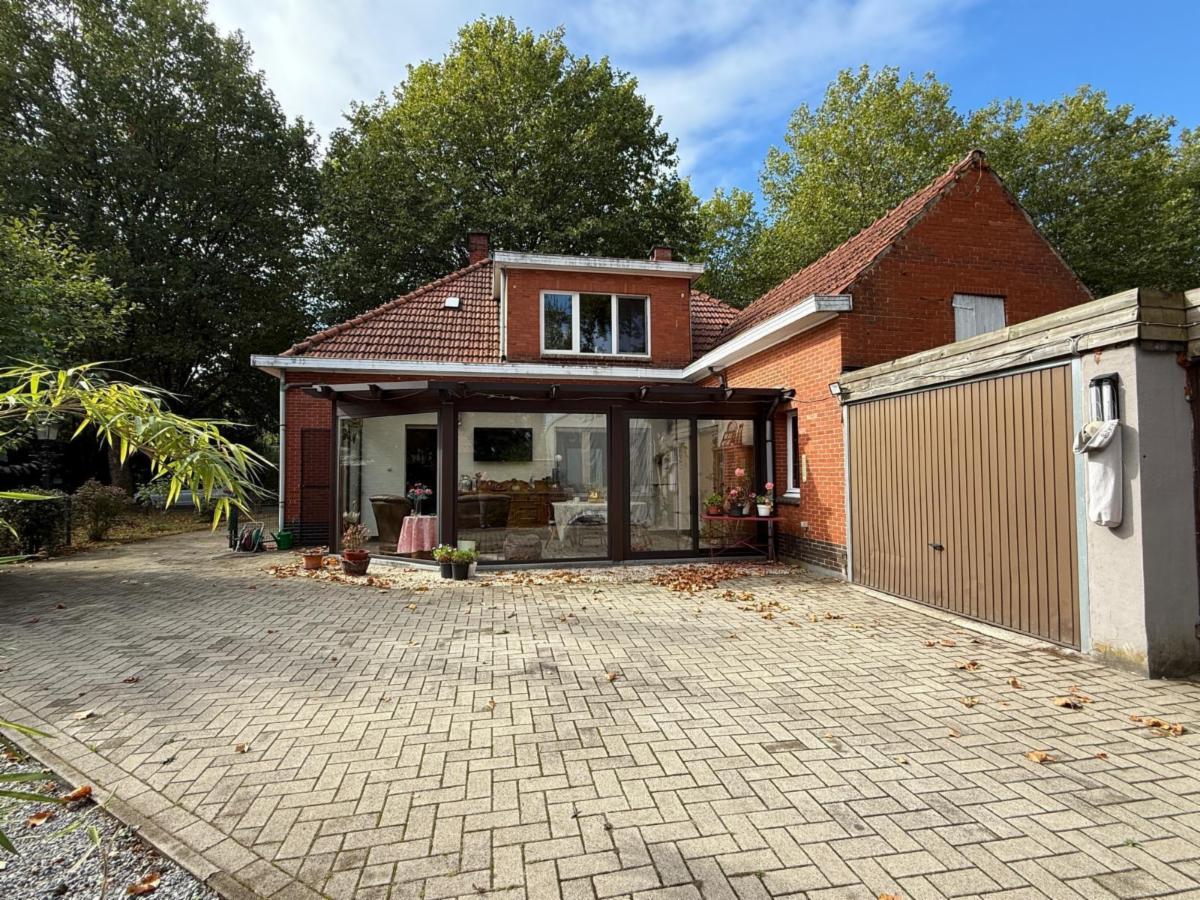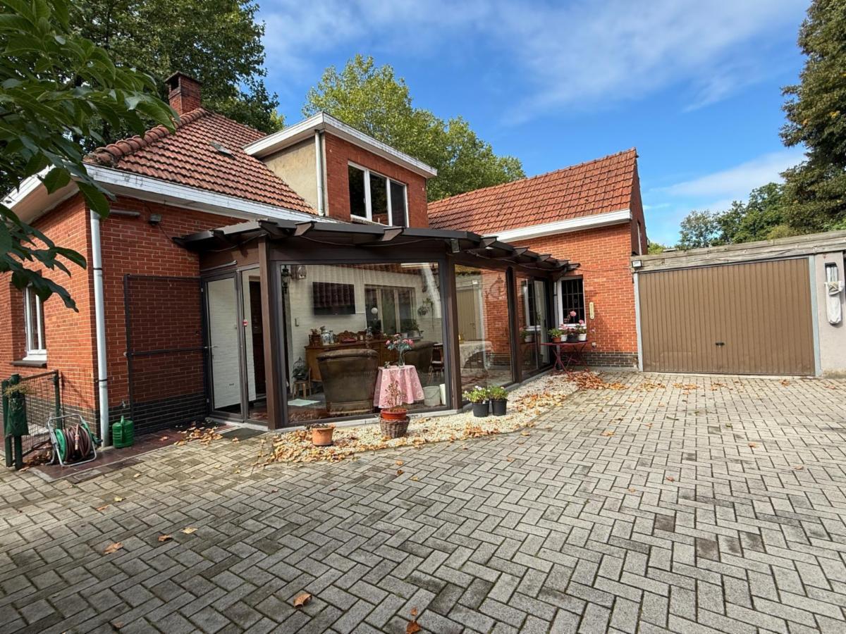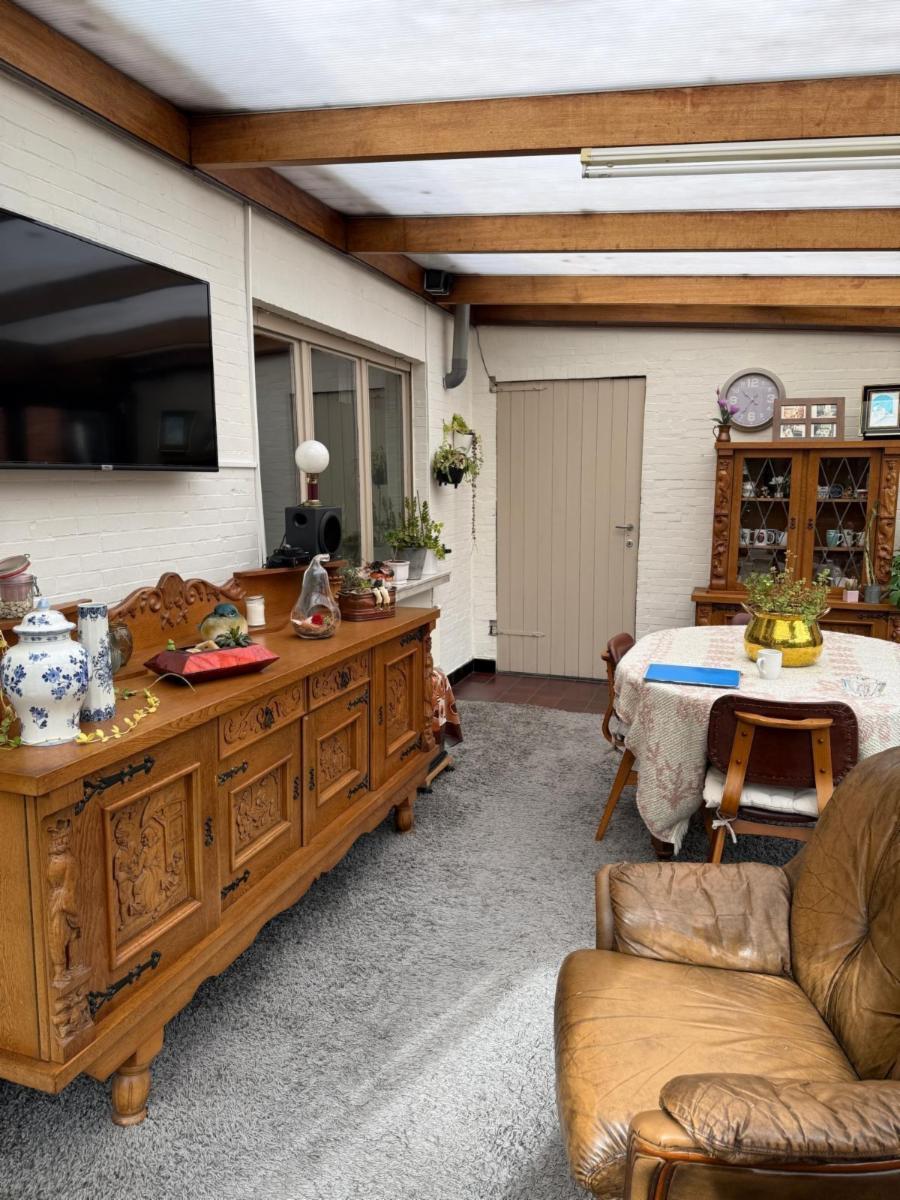 Vanuit de leefruimte loopt u door naar de keuken, voorzien van een kookplaat, dampkap en spoelbak. Achter de keuken bevindt zich de veranda met grote raampartijen die zorgen voor veel lichtinval. Vanuit de veranda bereikt u de praktische berging, waar ook de centrale verwarmingsinstallatie (op gas) en de zekeringkast zijn ondergebracht. Hier kan u uw wasmachine en droogkast plaatsen. Via de berging kan u de zolder betreden waar eventueel extra kamers voorzien kunnen worden. Aansluitend is er een inpandige garage met plaats voor één wagen, terwijl in het bijgebouw nog extra ruimte voorzien is voor een tweede wagen.Vanuit de keuken leidt een trap zowel naar de kelder als naar de eerste verdieping.