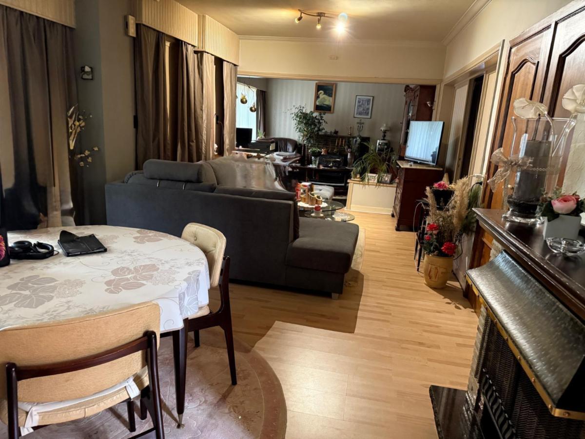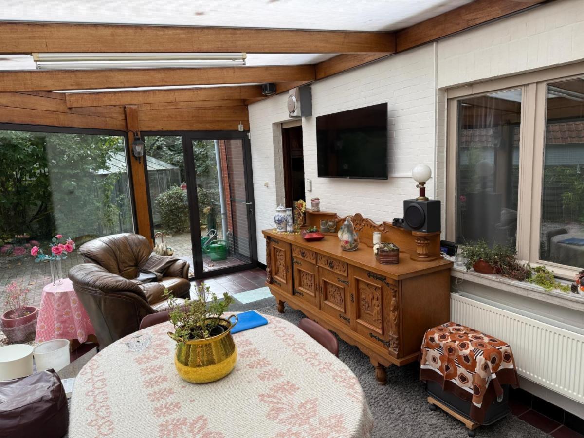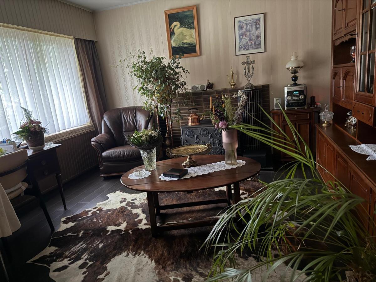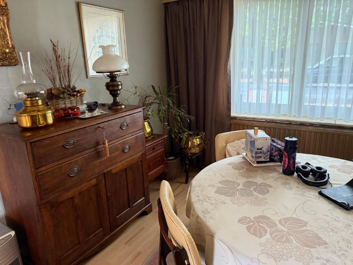 Vanuit de leefruimte loopt u door naar de keuken, voorzien van een kookplaat, dampkap en spoelbak. Achter de keuken bevindt zich de veranda met grote raampartijen die zorgen voor veel lichtinval. Vanuit de veranda bereikt u de praktische berging, waar ook de centrale verwarmingsinstallatie (op gas) en de zekeringkast zijn ondergebracht. Hier kan u uw wasmachine en droogkast plaatsen. Via de berging kan u de zolder betreden waar eventueel extra kamers voorzien kunnen worden. Aansluitend is er een inpandige garage met plaats voor één wagen, terwijl in het bijgebouw nog extra ruimte voorzien is voor een tweede wagen.Vanuit de keuken leidt een trap zowel naar de kelder als naar de eerste verdieping.