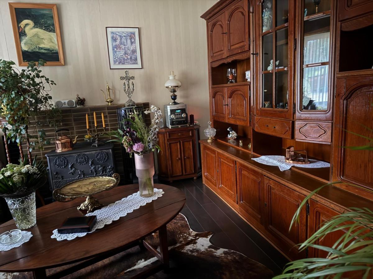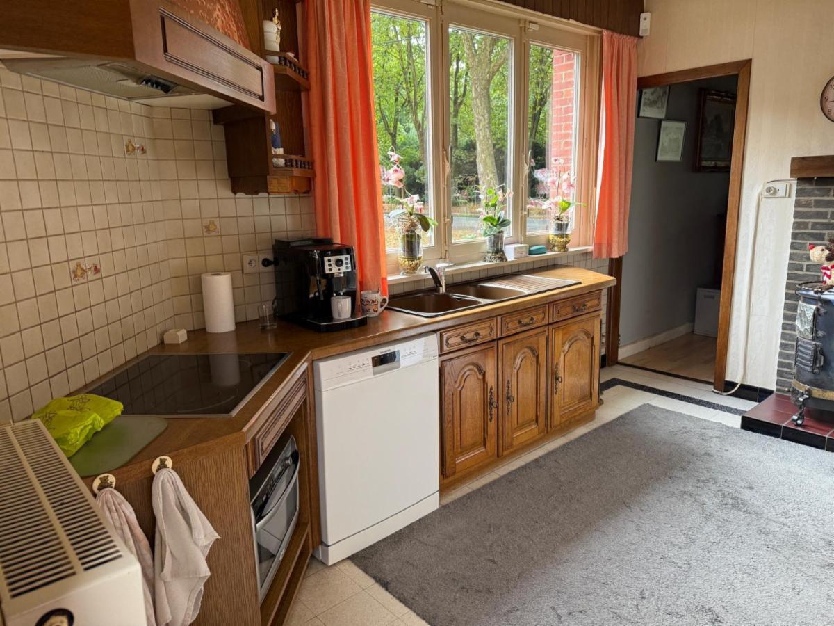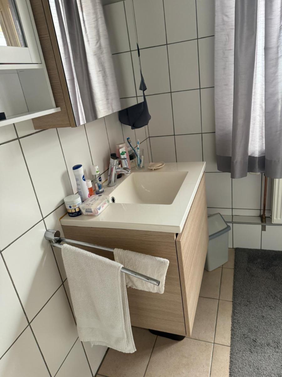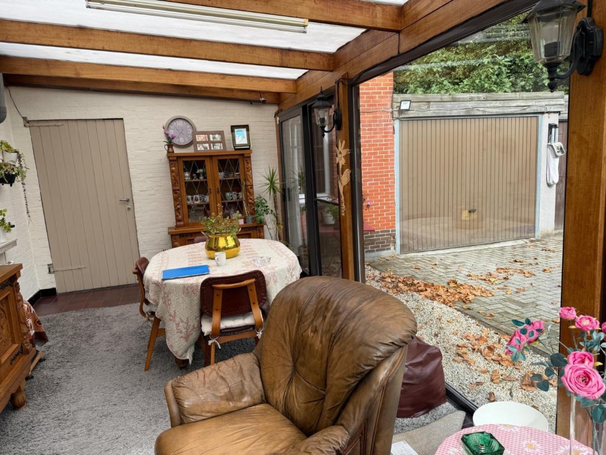 Vanuit de leefruimte loopt u door naar de keuken, voorzien van een kookplaat, dampkap en spoelbak. Achter de keuken bevindt zich de veranda met grote raampartijen die zorgen voor veel lichtinval. Vanuit de veranda bereikt u de praktische berging, waar ook de centrale verwarmingsinstallatie (op gas) en de zekeringkast zijn ondergebracht. Hier kan u uw wasmachine en droogkast plaatsen. Via de berging kan u de zolder betreden waar eventueel extra kamers voorzien kunnen worden. Aansluitend is er een inpandige garage met plaats voor één wagen, terwijl in het bijgebouw nog extra ruimte voorzien is voor een tweede wagen.Vanuit de keuken leidt een trap zowel naar de kelder als naar de eerste verdieping.