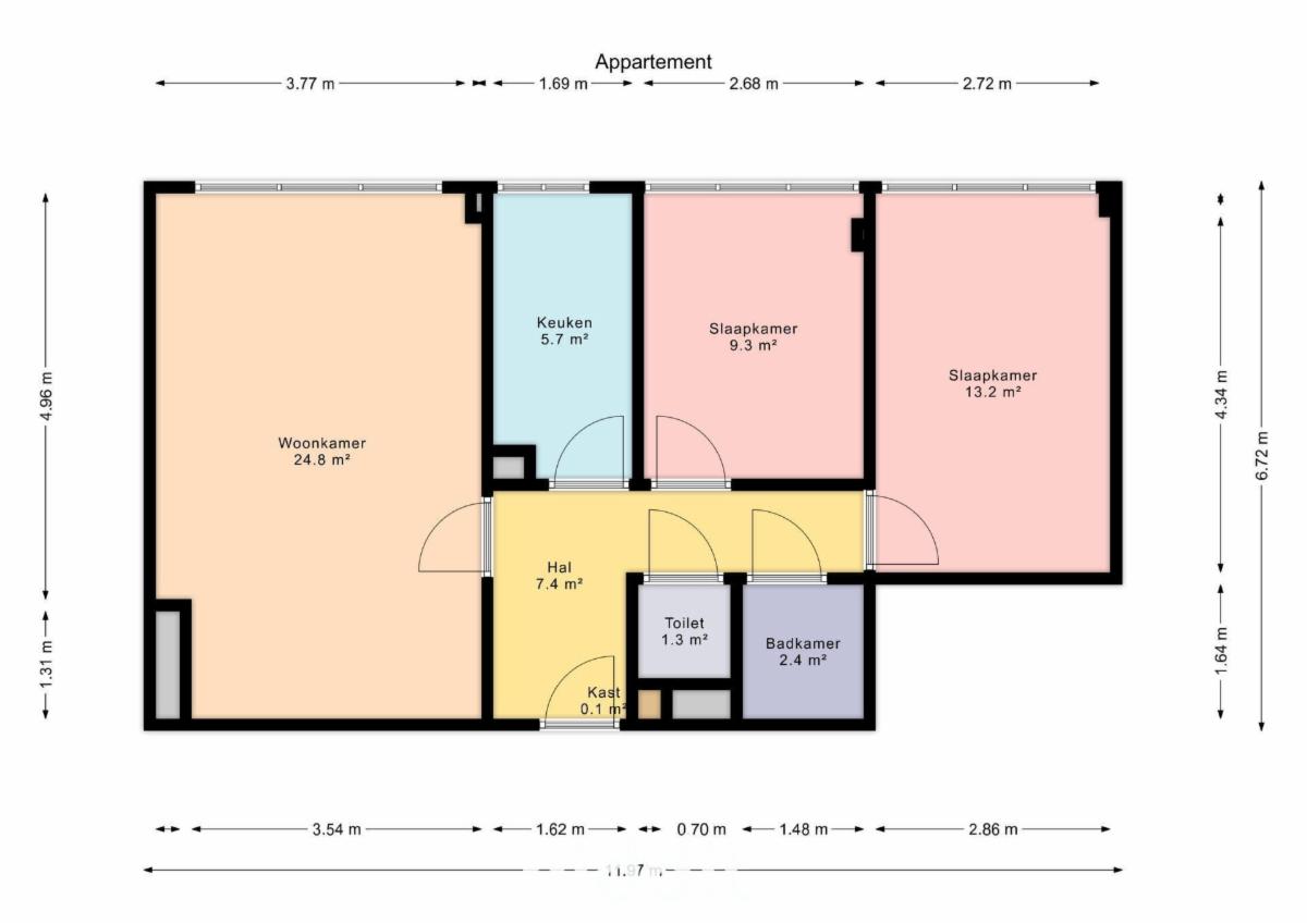 Twee slaapkamers met ingebouwde kasten. Volledig uitgeruste keuken. Een badkamer met ligbad en handdouche.