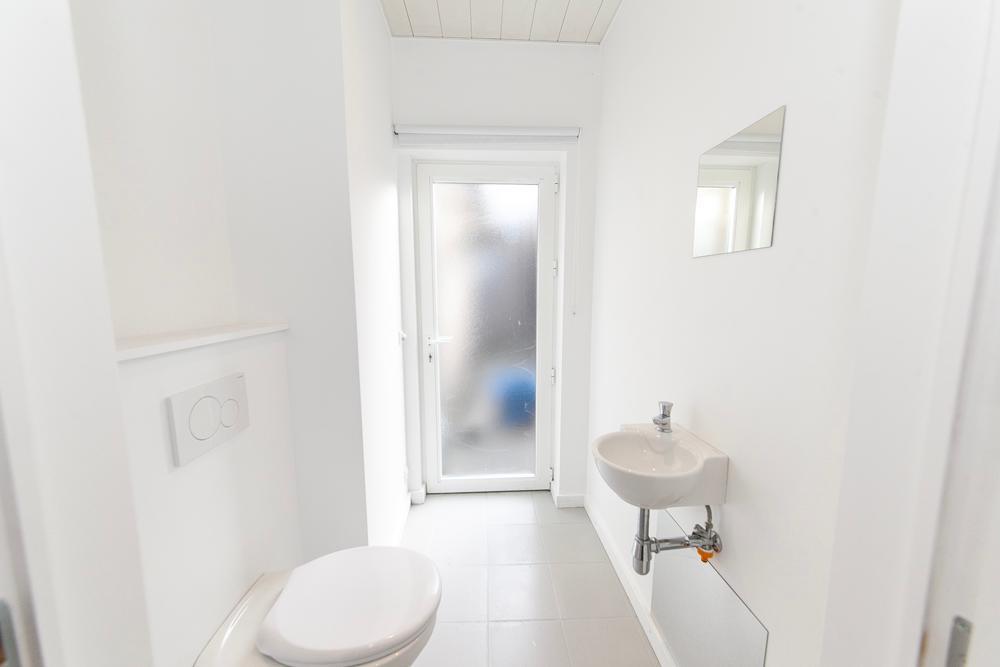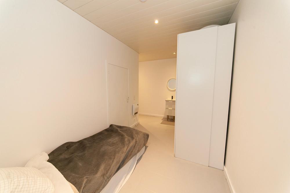 Het slaapgedeelte en de badkamer zijn vlot bereikbaar vanuit de woonkamer. De badkamer is uitgerust met een inloopdouche, ruim lavabomeubel en toilet met handenwasser. Er zijn in totaal 2 WC’s aanwezig waarvan 1 kan dienst doen als gastentoilet.