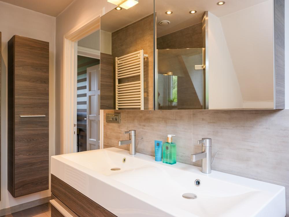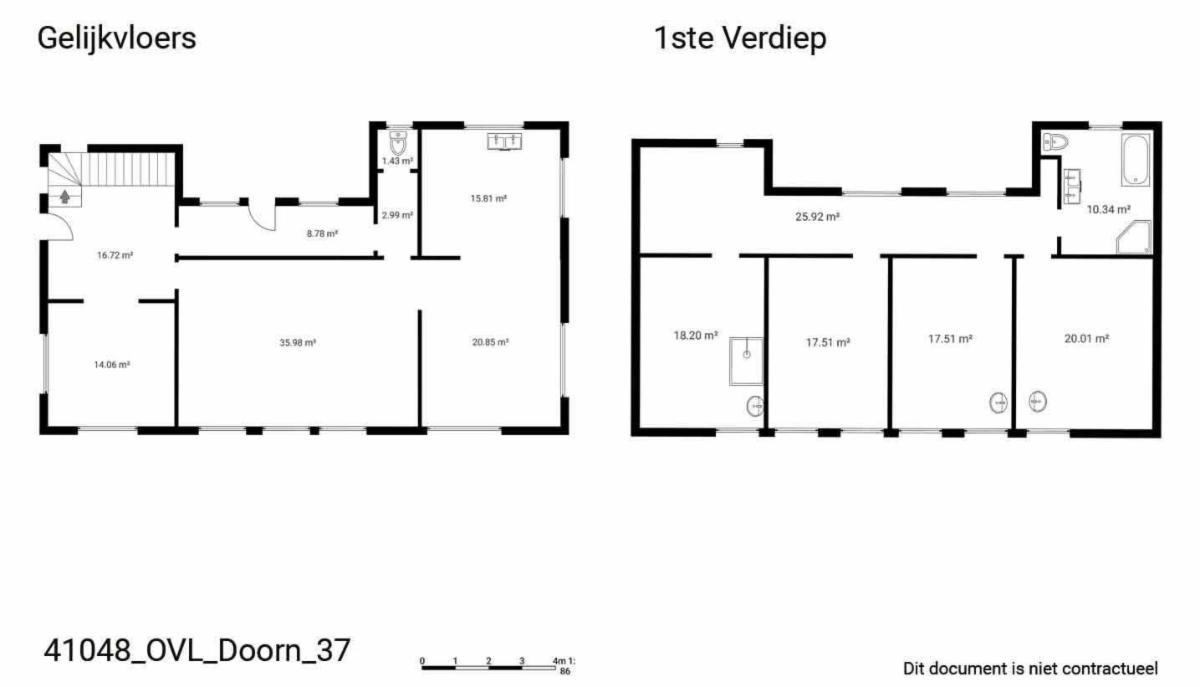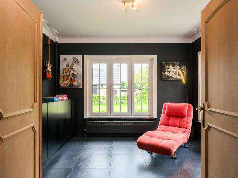 Een bureau/hobbykamer, inkomhal en bijkeuken vervolledigen de benedenverdieping. Boven zijn er vier grote slaapkamers en een badkamer.