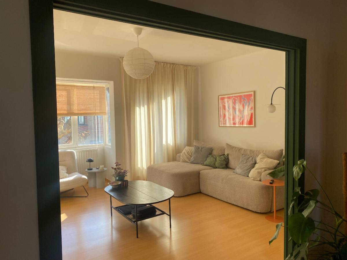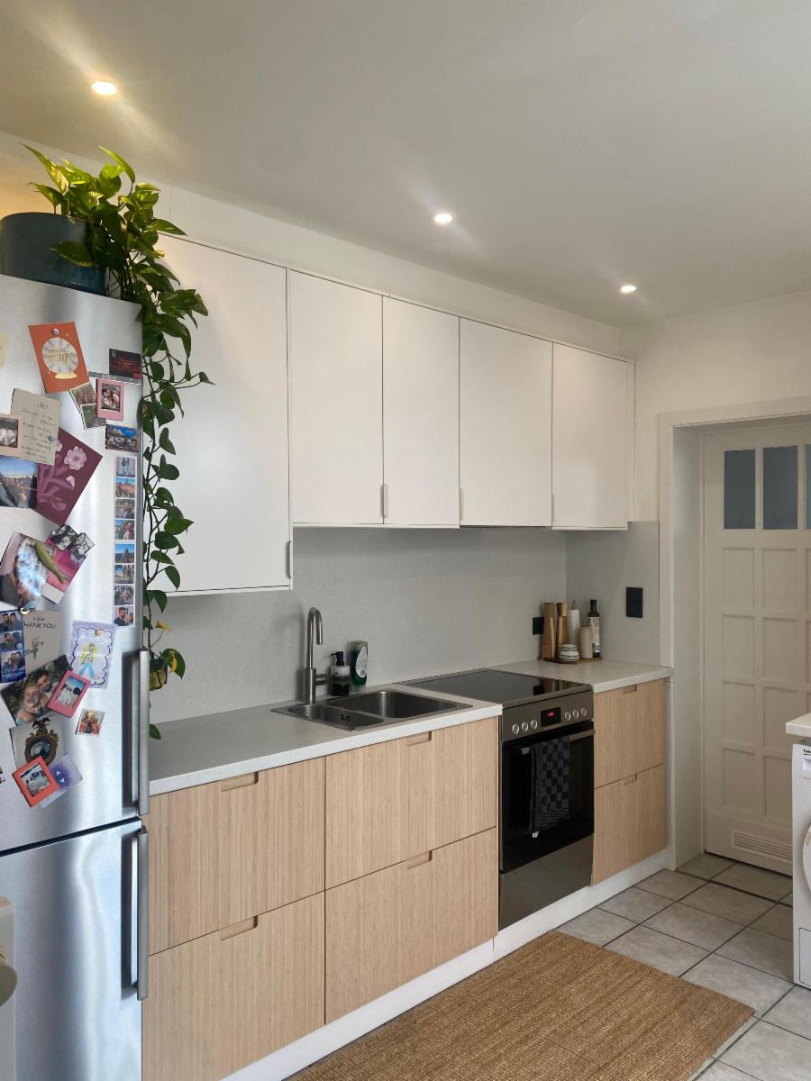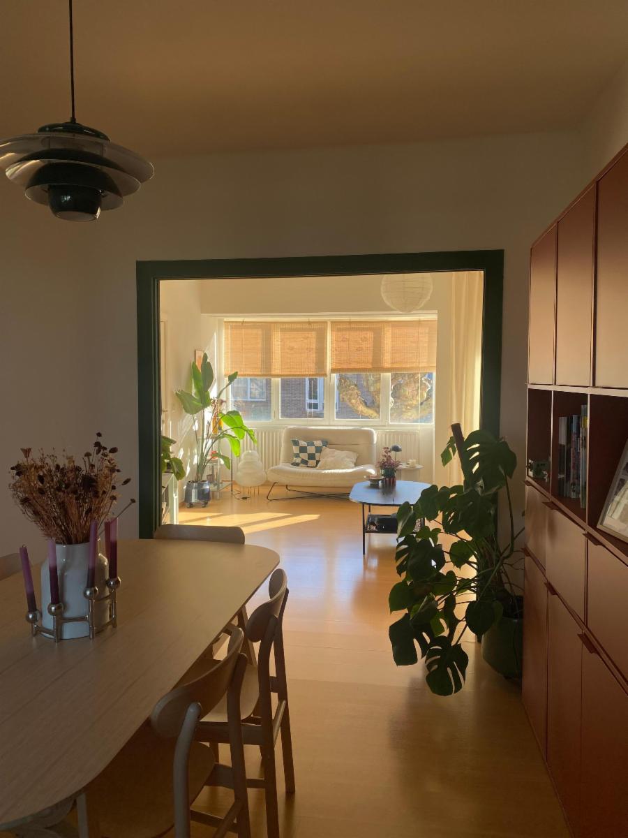 Dit gezellige appartement bevindt zich in het centrum van Sint-Niklaas in een rustige éénrichtingsstraat. Via de inkomhal ga je naar het eerste verdiep. Je komt binnen in een ruime en lichtrijke leefruimte met open eetplaats. Aansluitend volgt de keuken, die vorig jaar werd vernieuwd, met ruime koelkast en diepvriezer, fornuis met keramische kookplaat en aansluiting voor wasmachine en droogkast of vaatwasmachine. Naast de keuken bevindt zich een veranda van 8m2.
