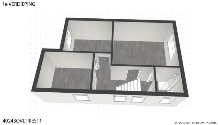 Indeling: Gelijkvloers: living, keuken, eetkamer, toilet, waskamer; Verdiep: gang, badkamer, 3 slaapkamers.