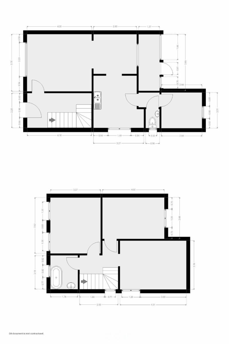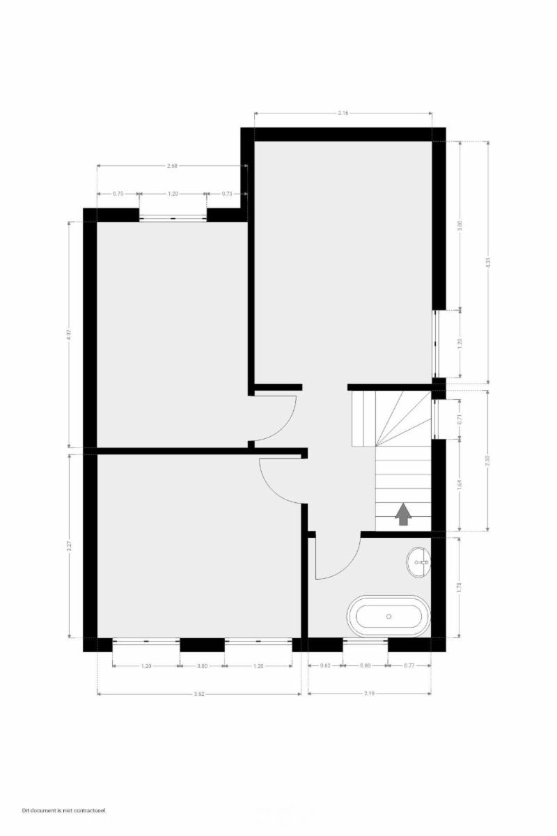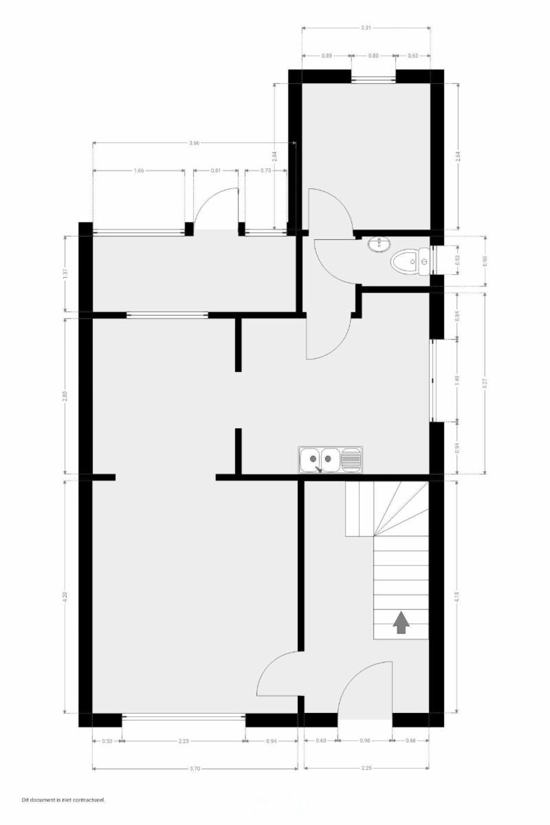 Indeling: Gelijkvloers: living, keuken, eetkamer, toilet, berging; Verdiep: gang, badkamer, 3 slaapkamers.