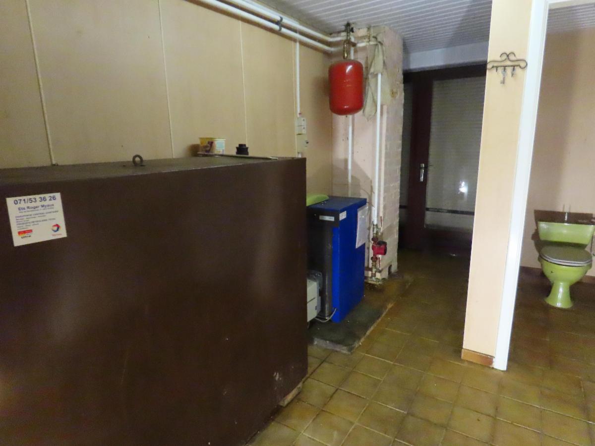 - chaufferie +/- 7m² avec chaudière Ciney, cuve à mazout 1200 l + petit réduit WC.