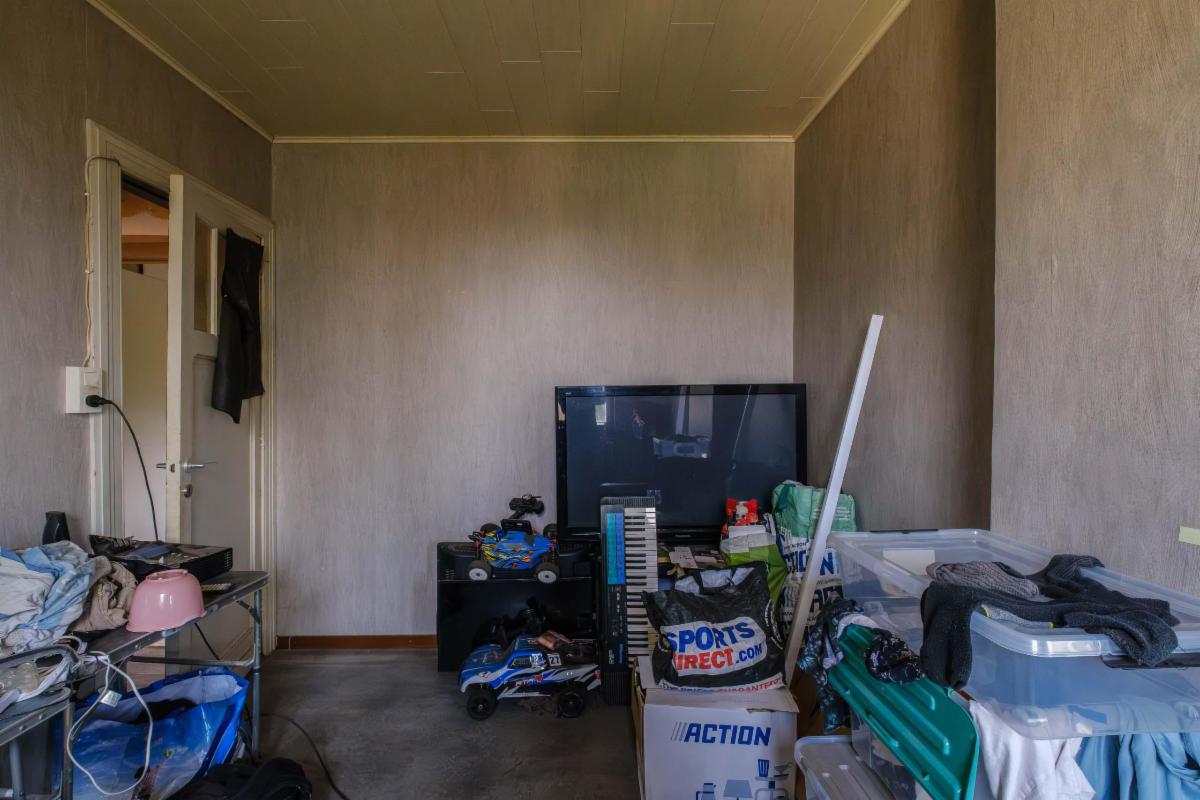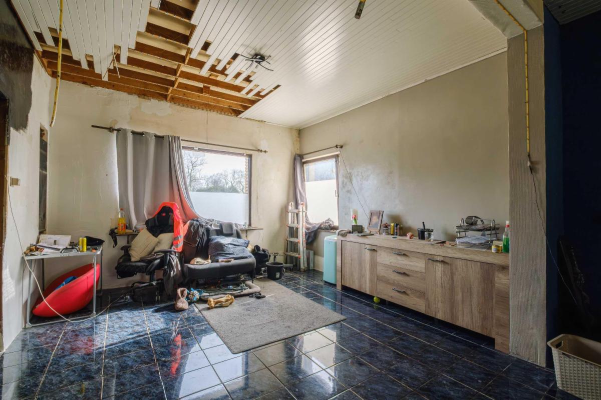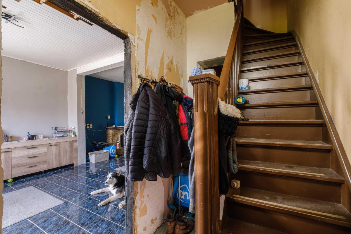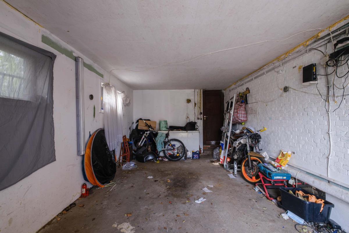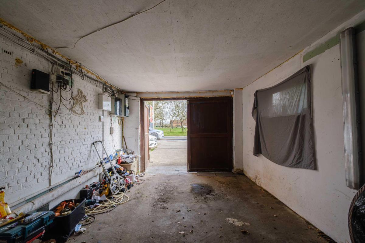 De te renoveren woning heeft 3 slaapkamers, een nog in te richten zolder, een badkamer, keuken en bijkeuken, een living, een kleine kelder en een garage rechtstreeks aan de woning.
