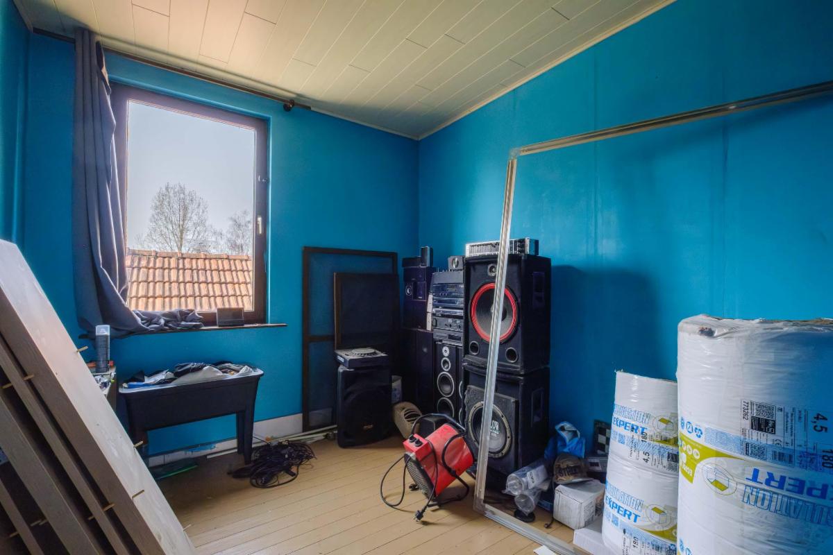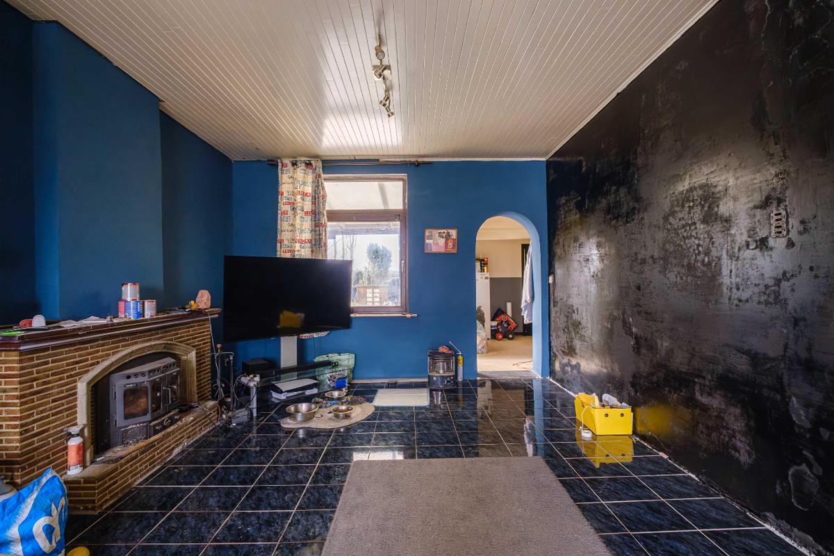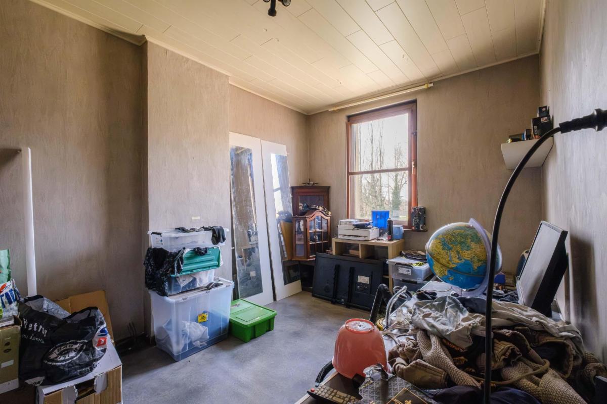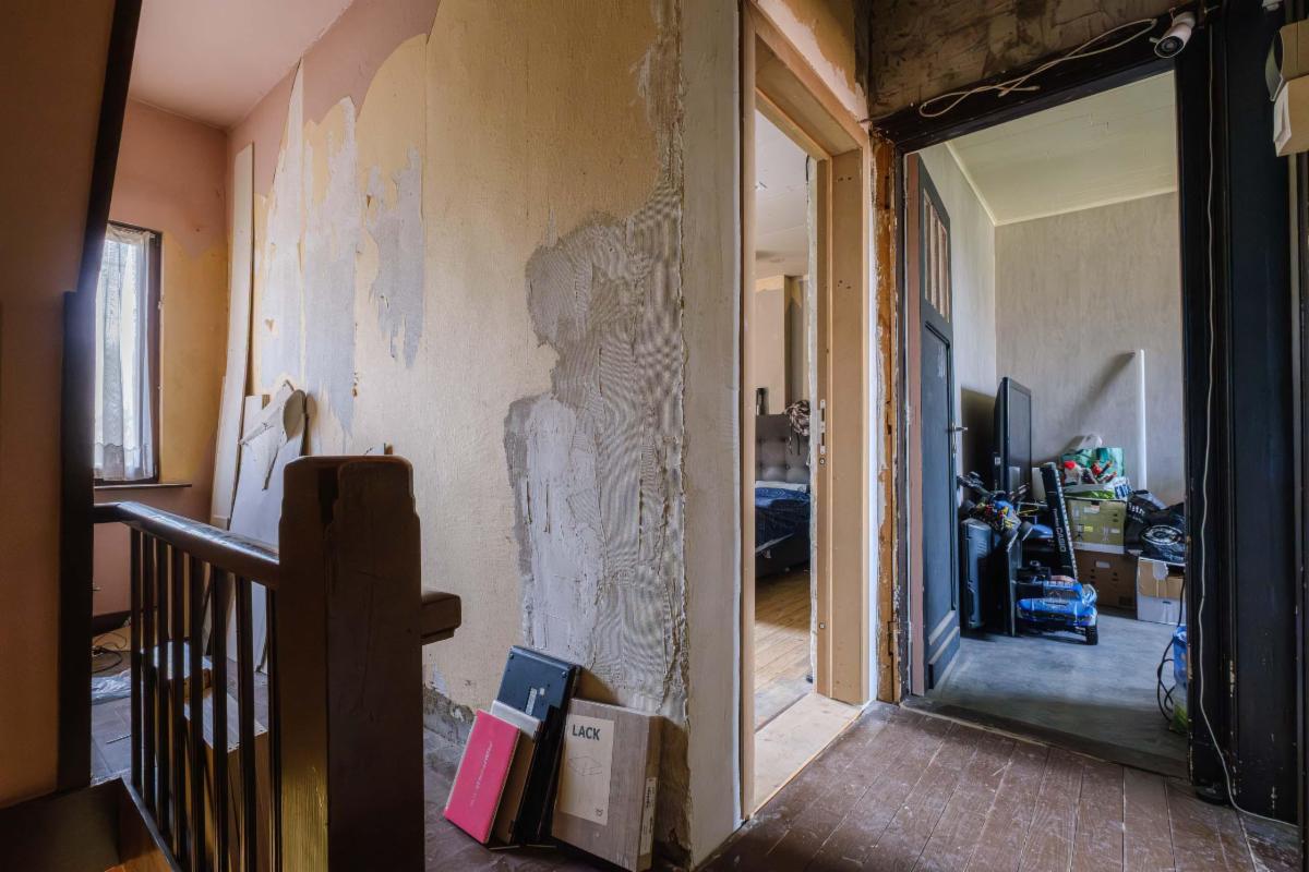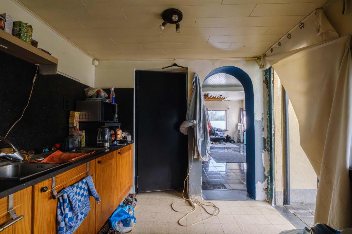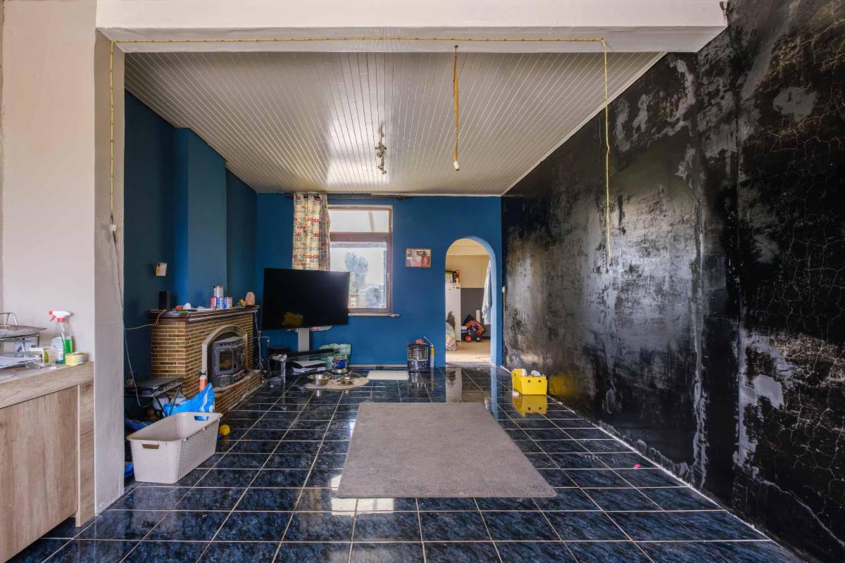 De te renoveren woning heeft 3 slaapkamers, een nog in te richten zolder, een badkamer, keuken en bijkeuken, een living, een kleine kelder en een garage rechtstreeks aan de woning.