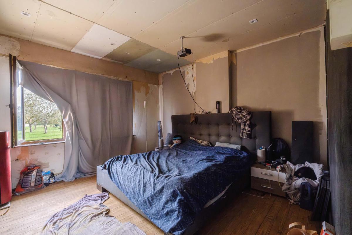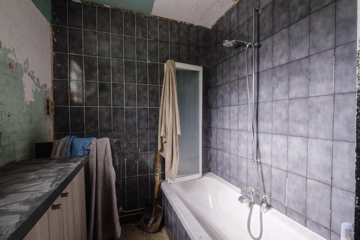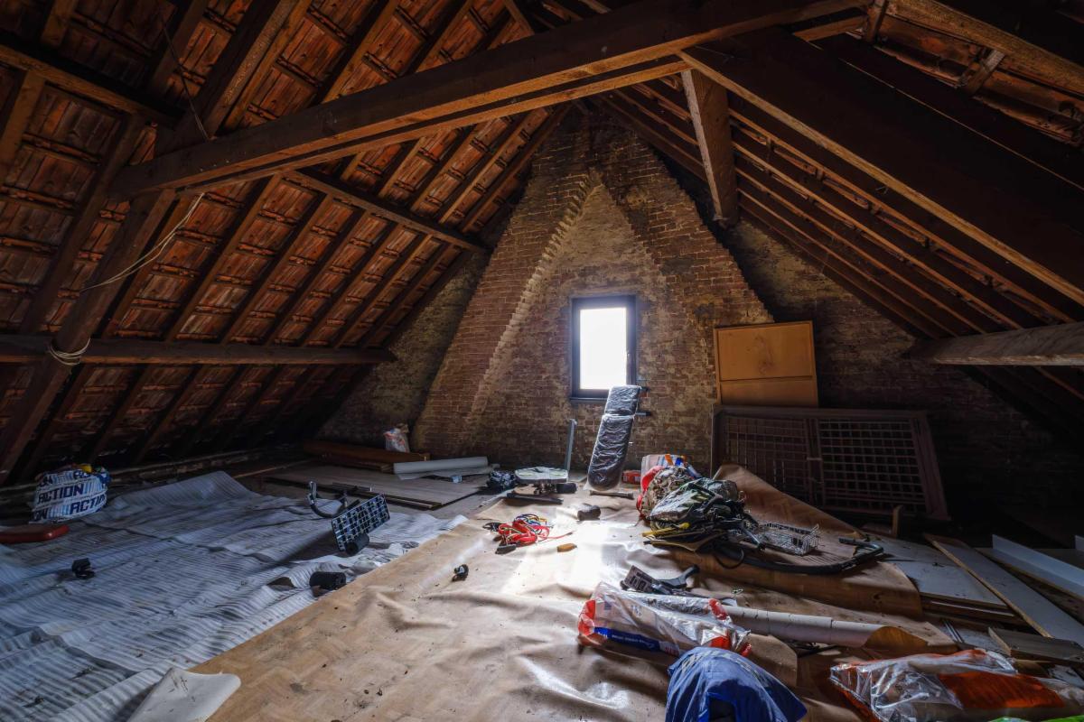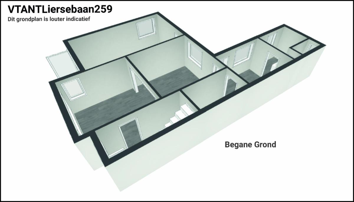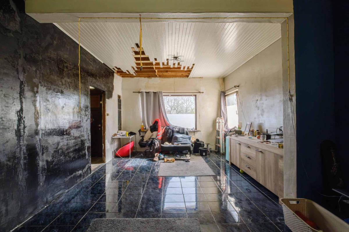 De te renoveren woning heeft 3 slaapkamers, een nog in te richten zolder, een badkamer, keuken en bijkeuken, een living, een kleine kelder en een garage rechtstreeks aan de woning.