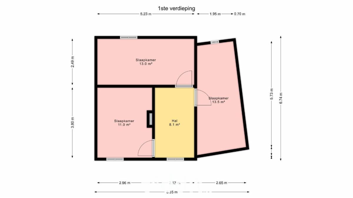 Gelijkvloers: inkomhal, living, keuken, badkamer, 3 opslagruimtes, garage, tuin;