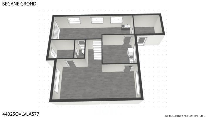 De woning beschikt over een inkom met toilet, ruime living, keuken, garage en tuin.