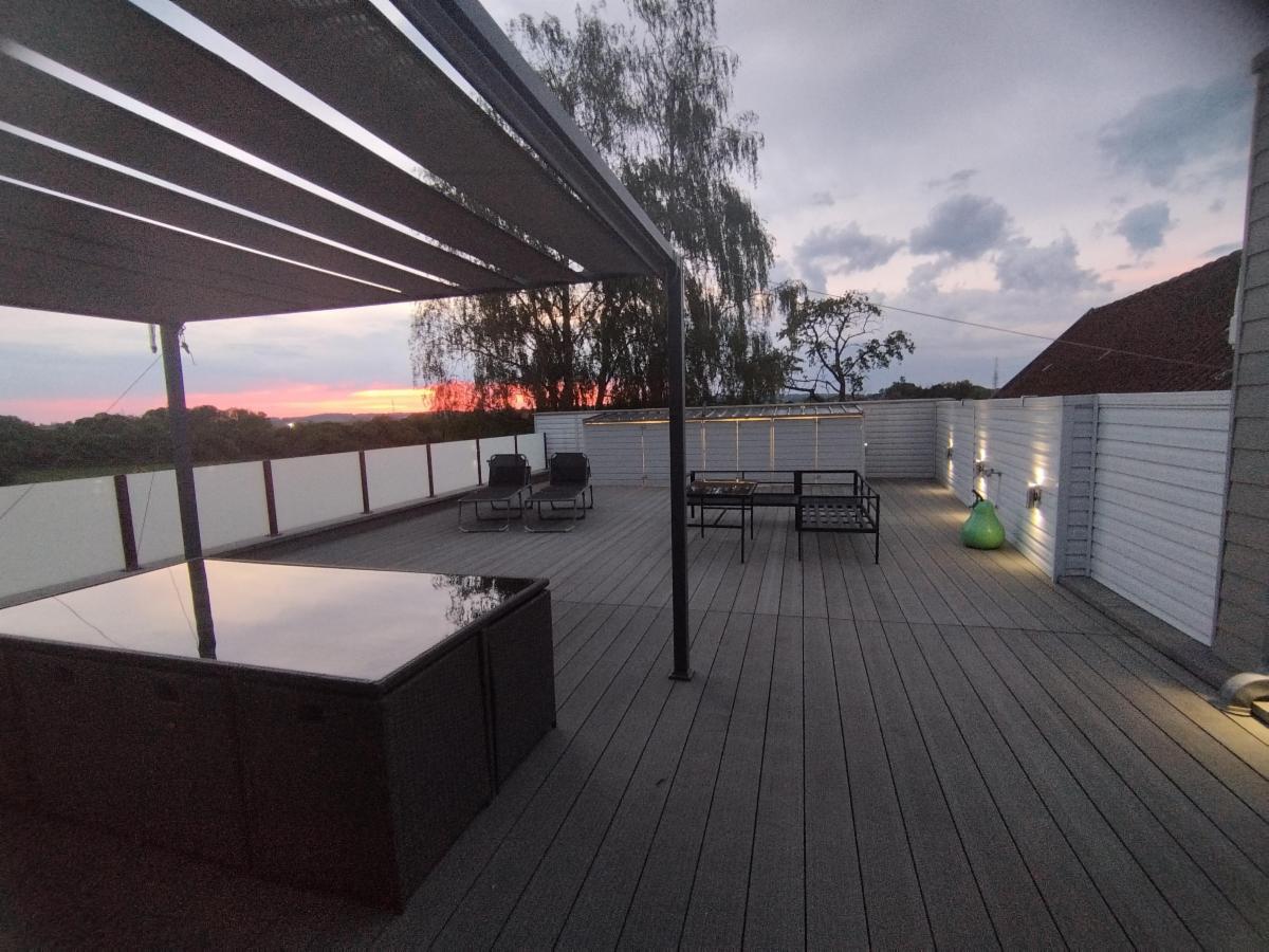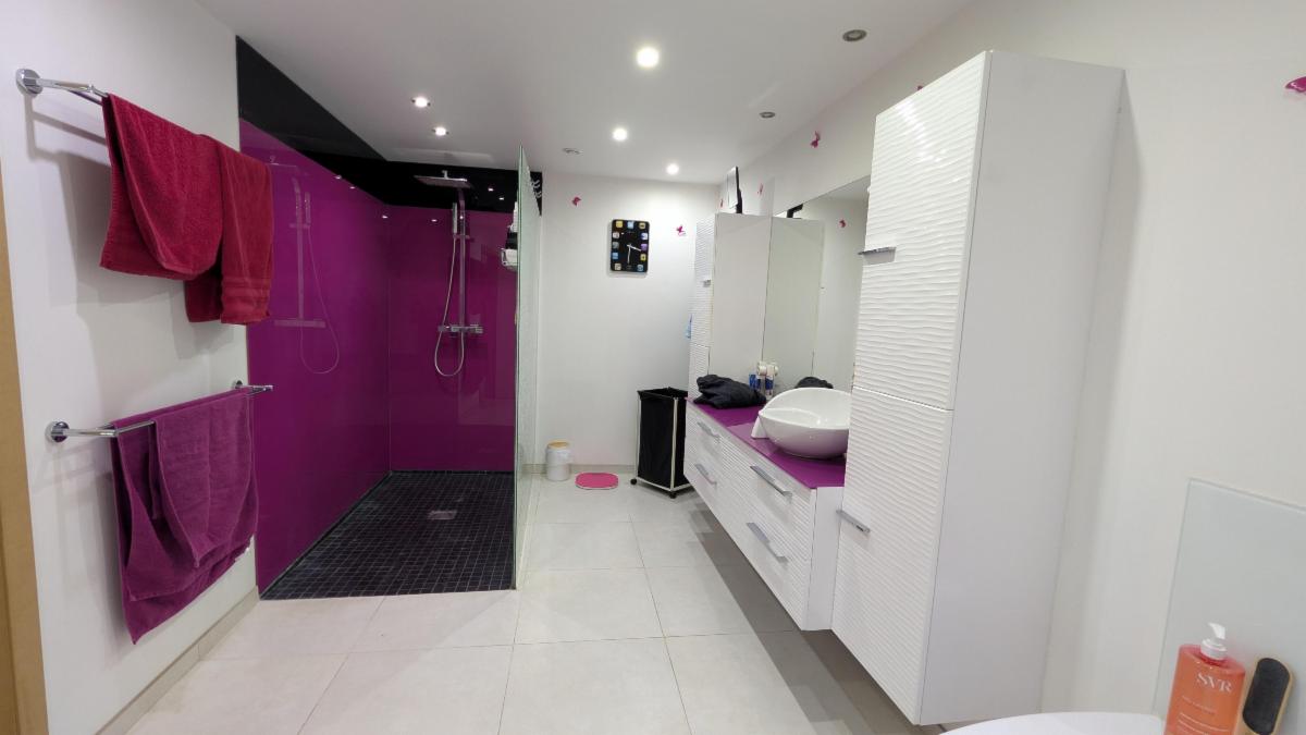 Aspects techniques : châssis PVC DV, moustiquaires, velux (ouverture électrique et manuel) avec volets électriques programmables, panneaux photovoltaïques, chauffage sol, chaudière par condensation gaz, système caméra fonctionnel & interphone, ventilation double flux (connectée), climatiseurs chaud/froid connectés, raccordement à l’égout, fosse septique et dégraisseur.