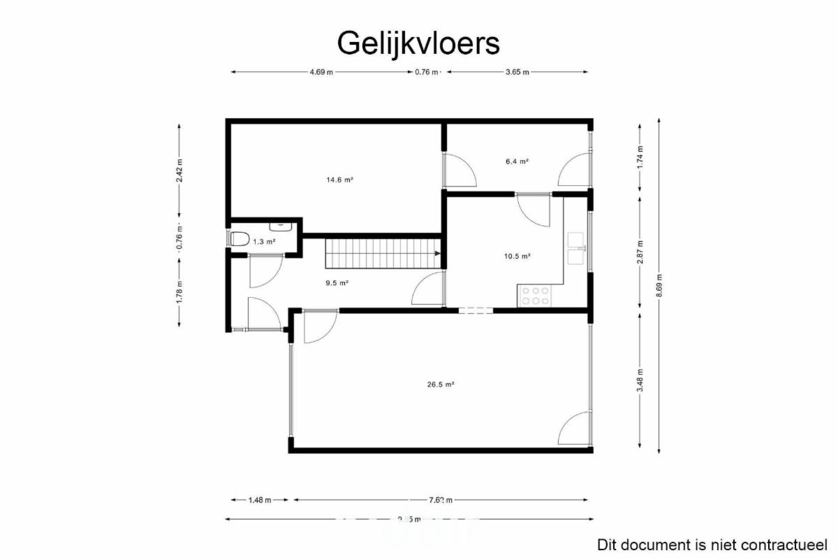 Omvat inkomhal met trap, wc, living, keuken. 3 ruime slaapkamers, badkamer en wc, inpandige garage.