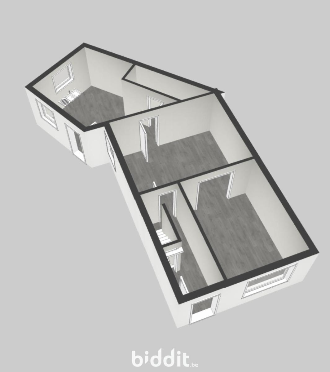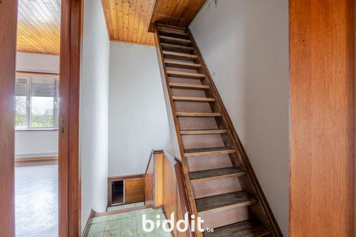 Inkomhal met toegang naar de kelder en trap naar de 1e verdieping, woonkamer, eetkamer, toilet/wasplaats, recent vernieuwde keuken (2019) die via de achterdeur toegang biedt tot de tuin. De keuken is modern en functioneel, en biedt voldoende ruimte; 1e Verdieping: nachthal met trap naar zolder, 2 slaapkamers, eenvoudige badkamer met enkel een zitbad; Zolder: deze ruimte is momenteel niet ingericht, maar biedt potentieel voor verdere ontwikkeling, bijvoorbeeld als extra slaapkamer, werkruimte of opslagruimte; Kelder voor extra bergruimte.