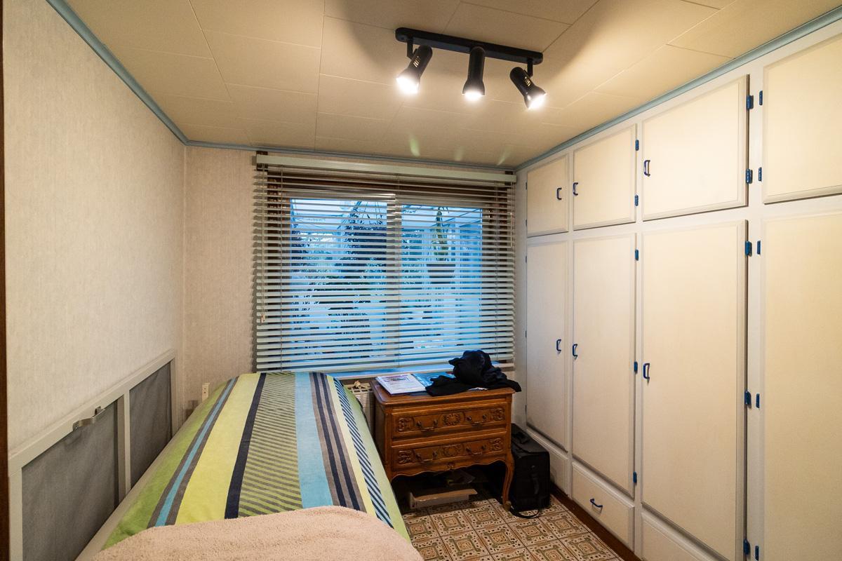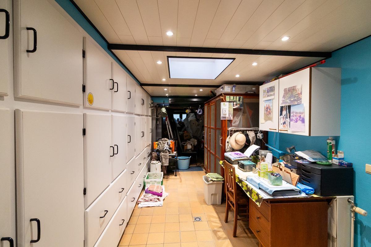 • Berg/bureauruimte met ingebouwde kastenwand, ideaal voor extra opslag of als werkplek. Aansluitend is er een extra toilet, spoelbak en douche.