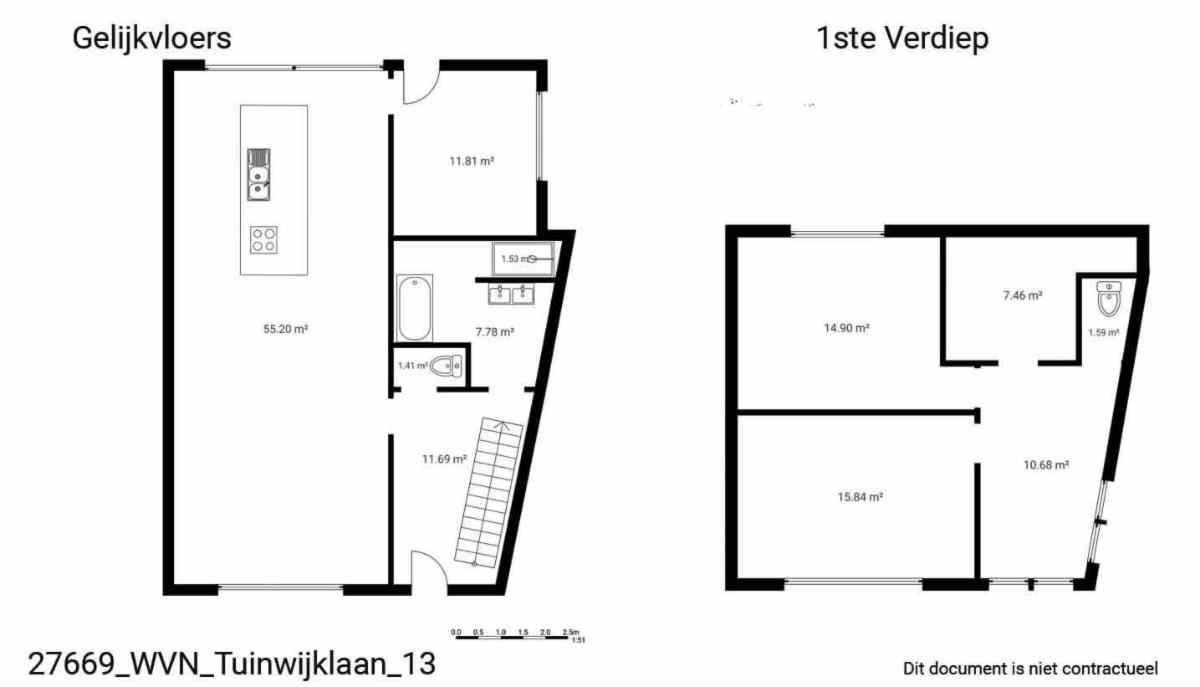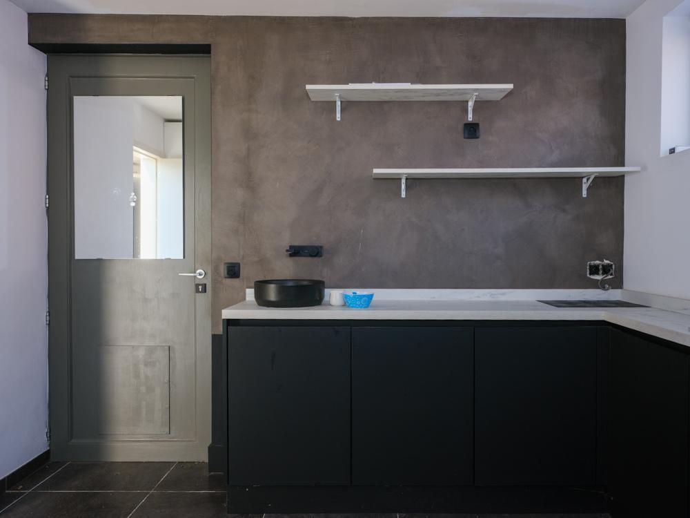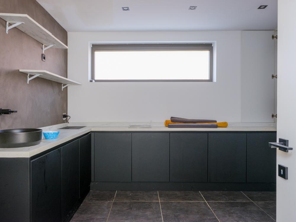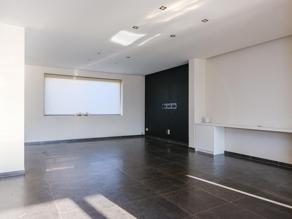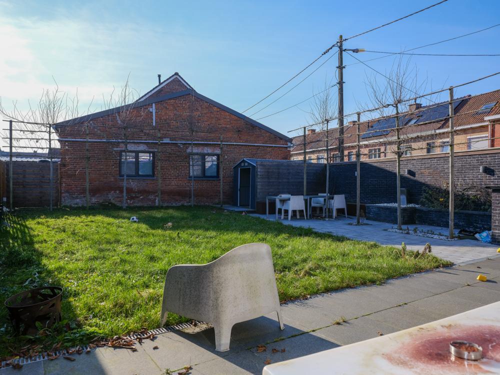 - gelijkvloers: inkomhal met toilet - badkamer bestaande uit dubbele lavabo, bad en douche - salon met aansluitend open leefkeuken met eiland en ingemaakte kasten met zicht op de tuin - een afzonderlijke ruimte bereikbaar via de straat;