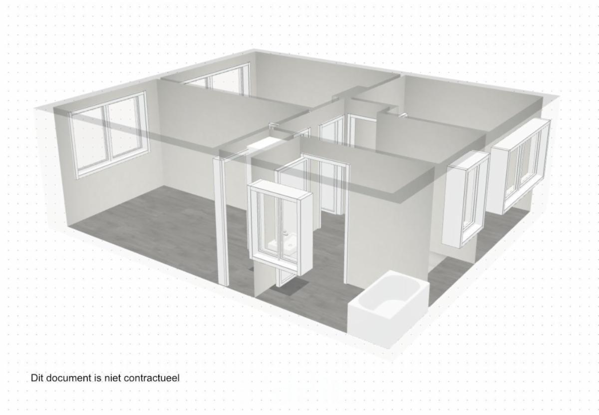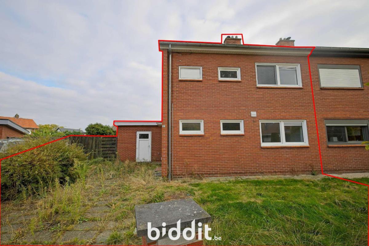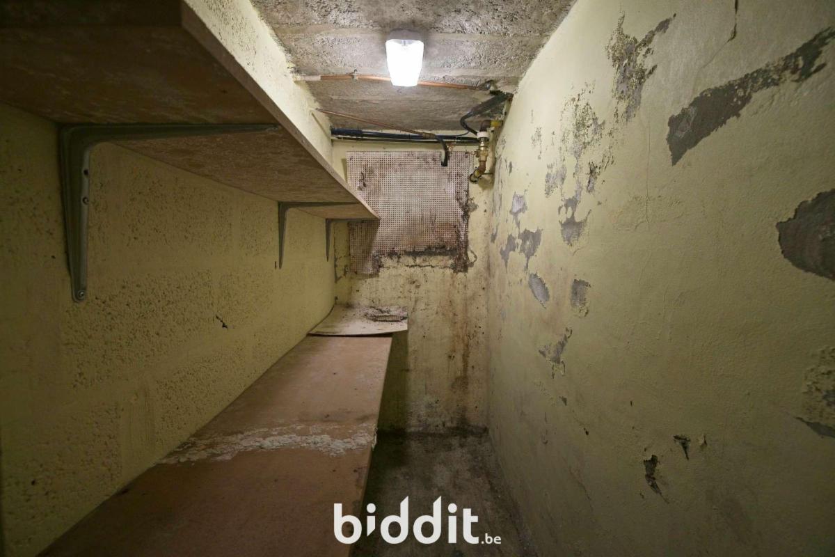 - gelijkvloers: inkom, wc, living, keuken (zonder apparatuur), 2 bergingen;
