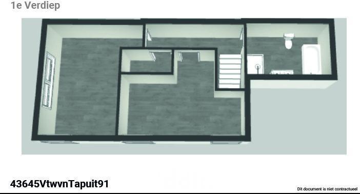 1° verdiep : hall met badkamer met wc, douche en bad, slaapkamer 1, slaapkamer 2 en berging.