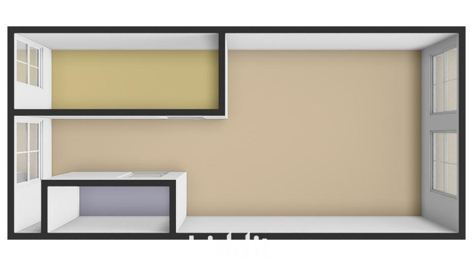 Gelijkvloers: handelsruimte met aparte opslagruimte en 4 toiletten; Verdieping 1, 2 en 3: studio met aparte badkamer.