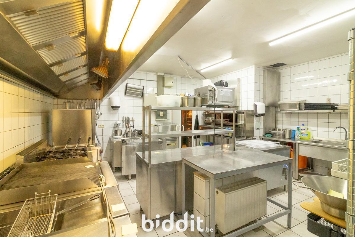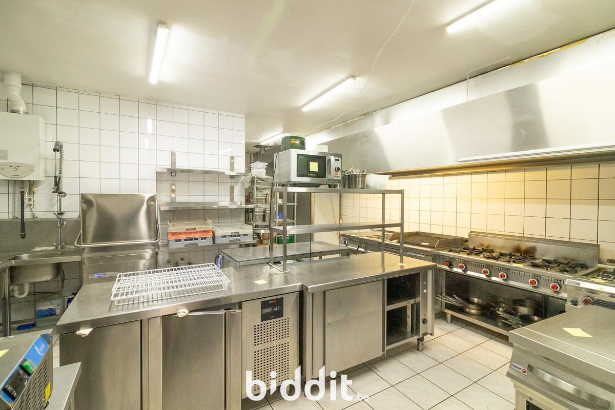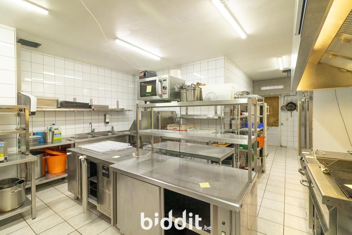 - Gelijkvloers: gemeenschappelijke inkomhal, gelagzaal met plaats voor 100 personen, bar met aansluitend een industriële keuken (over te nemen), sanitair blok (heren - en damestoiletten), kleine buitenruimte (koertje).