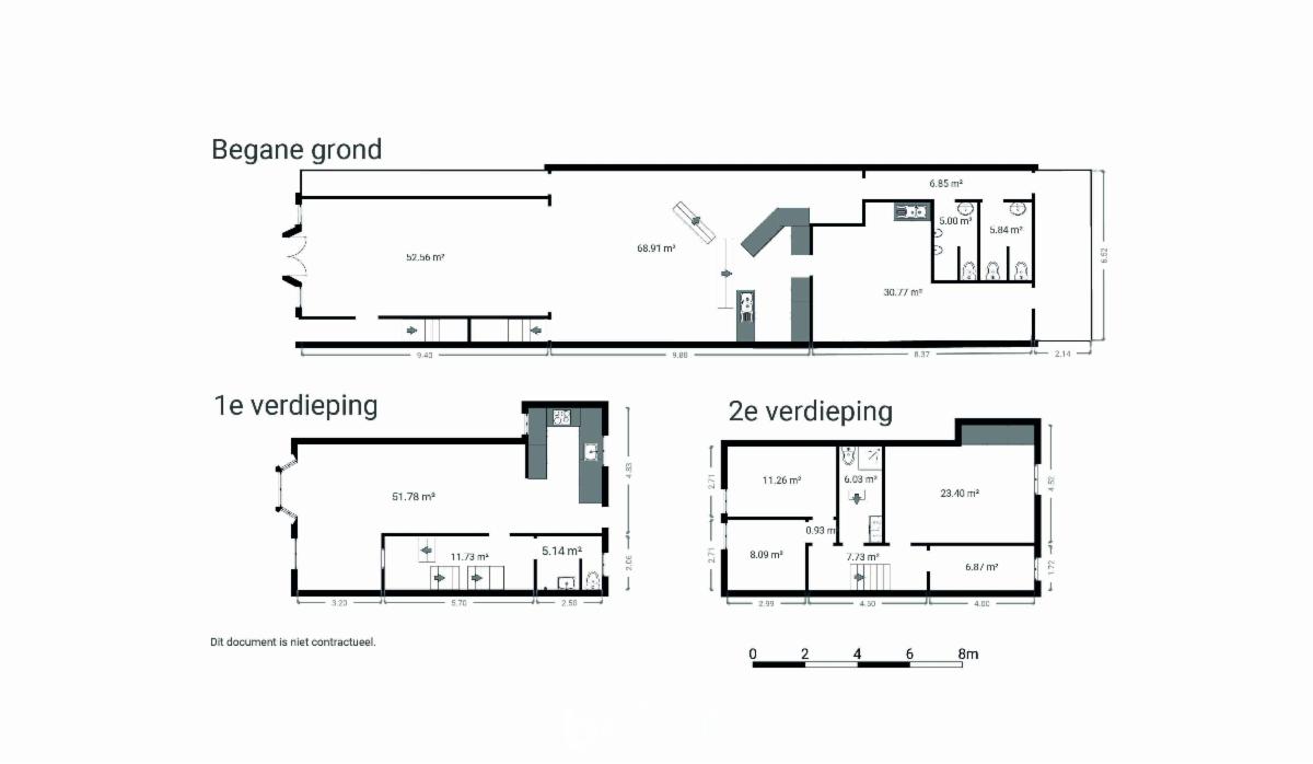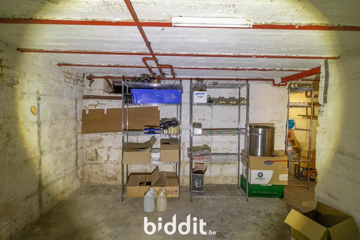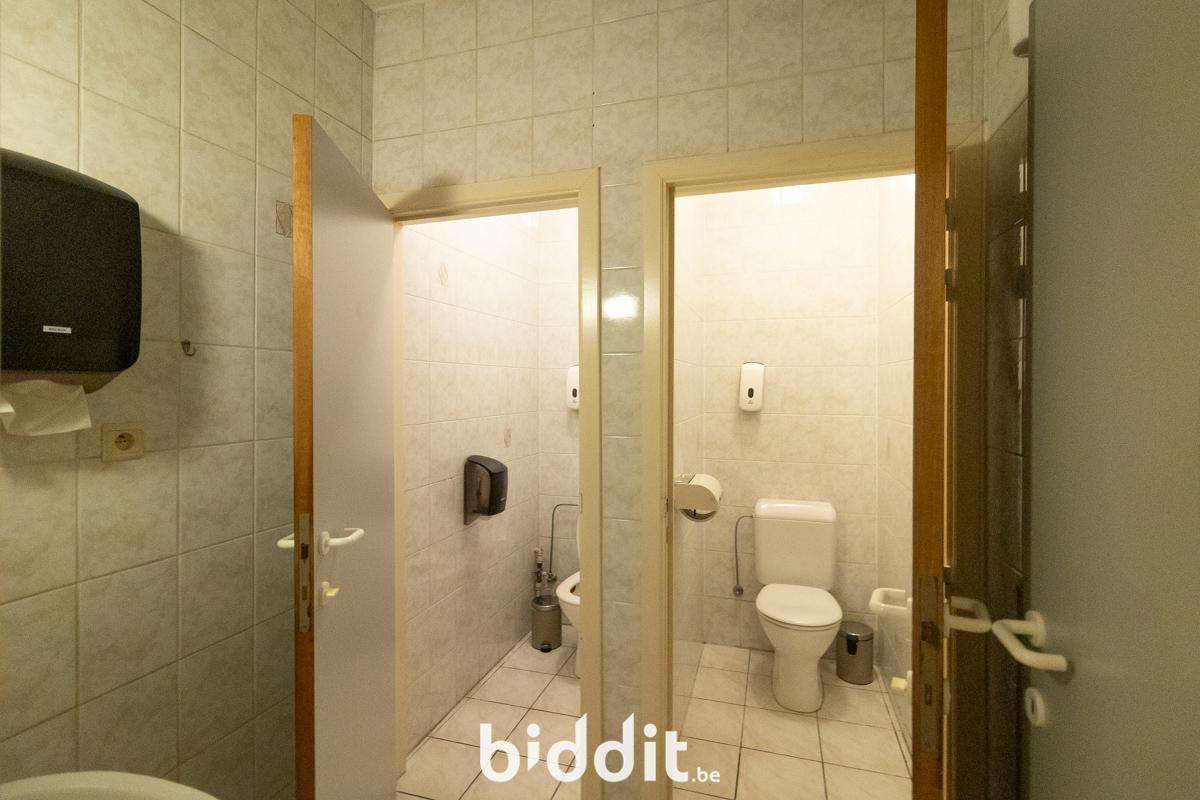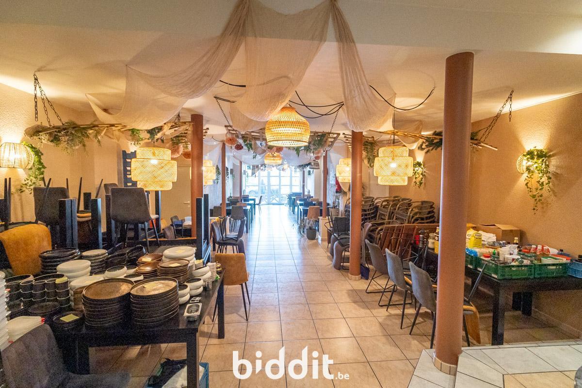 - Gelijkvloers: gemeenschappelijke inkomhal, gelagzaal met plaats voor 100 personen, bar met aansluitend een industriële keuken (over te nemen), sanitair blok (heren - en damestoiletten), kleine buitenruimte (koertje).