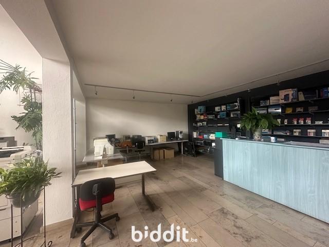 Achter winkel (gelijkvloers): 2 kamers (ruimtes dienstig als bureau)