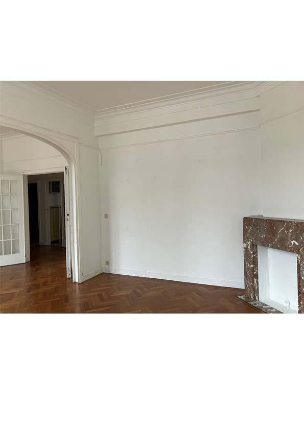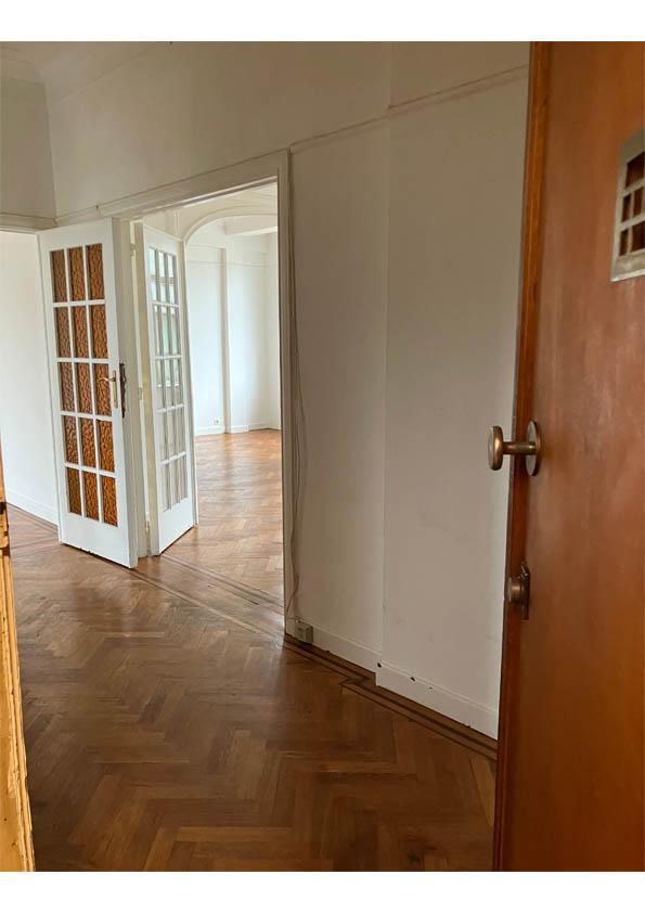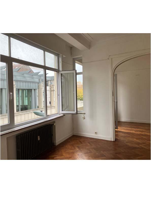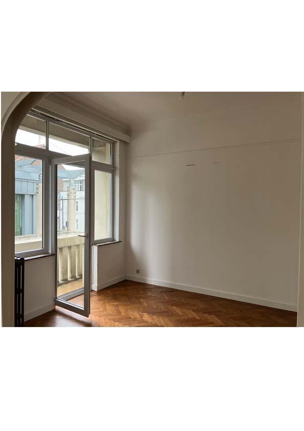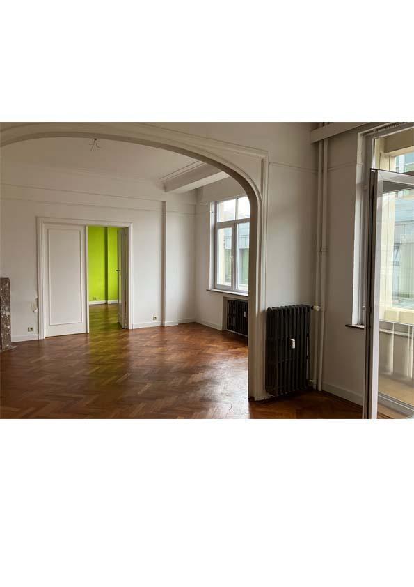 Omvattende : 2 slaapkamers, badkamer, eetplaats die een integraal onderdeel vormt van de woonkamer, inkomhal, wc, doorloop, keuken en terras, kelder nr 22 op ondergr. verd., zolderkamer nr° 8 op 5e verd. achteraan. N.g.k.i. 1.048€. Vrij van gebruik. Woongebied, GCHEWS. EPC D+/161. Contr. elektr. niet conform. Bezoeken vanaf 5/12/2025 : vrijdagen van 16-17u en zaterdagen van 15-16u.