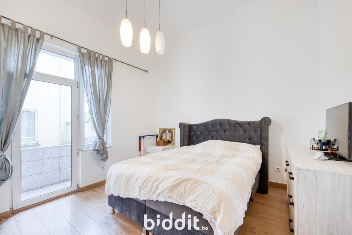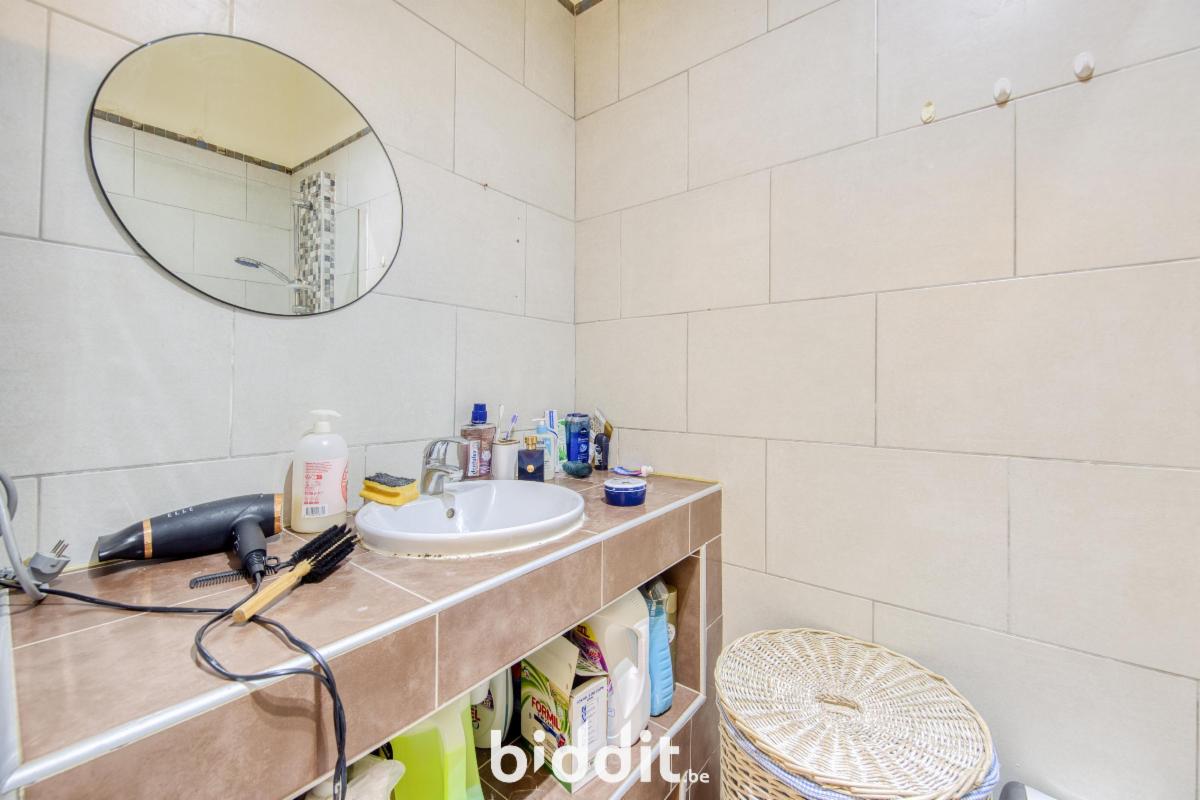 Omvattende : inkomhal, 2 slaapkamers waarvan één met terras, bergplaats, living met keukenhoek, badkamer, wc. N.g.k.i.. 877€. In gebruik. EPC: F/282. Contr. elektr. niet conform. Volgens stedenbouw erkend als een appartement 1 kamer.
