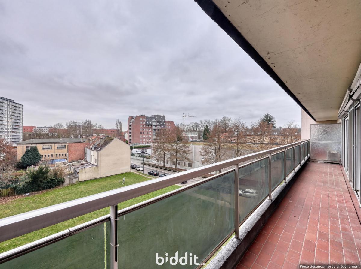 Omvattende inkomhal met vestiaire, wc, badkamer, living, keuken, 2 slaapkamers met terras, kelder nr 100 op niv. Mezzanine, autostaanplaats nr G.P. 19 op ondergr. verd. N.g.k.i. 1.227€. Vrij ten laatste 2 maand nadat de toewijzing definitief wordt. Woongebied. EPC B/77. Contr. elektr. niet conform. Bezoeken (vanaf 27/1 tem 14/2) : elke dinsdag en elke zaterdag van 11u30-12u30.