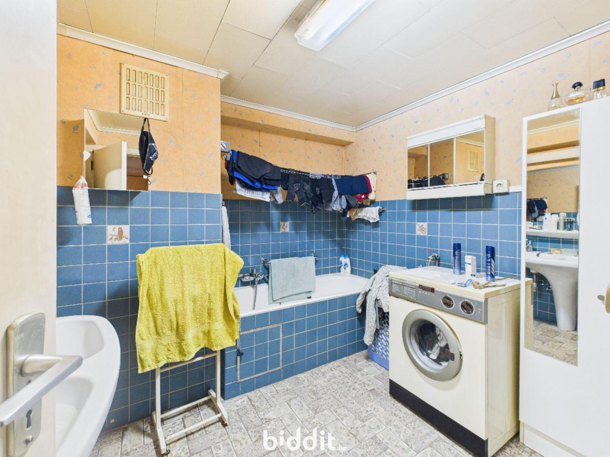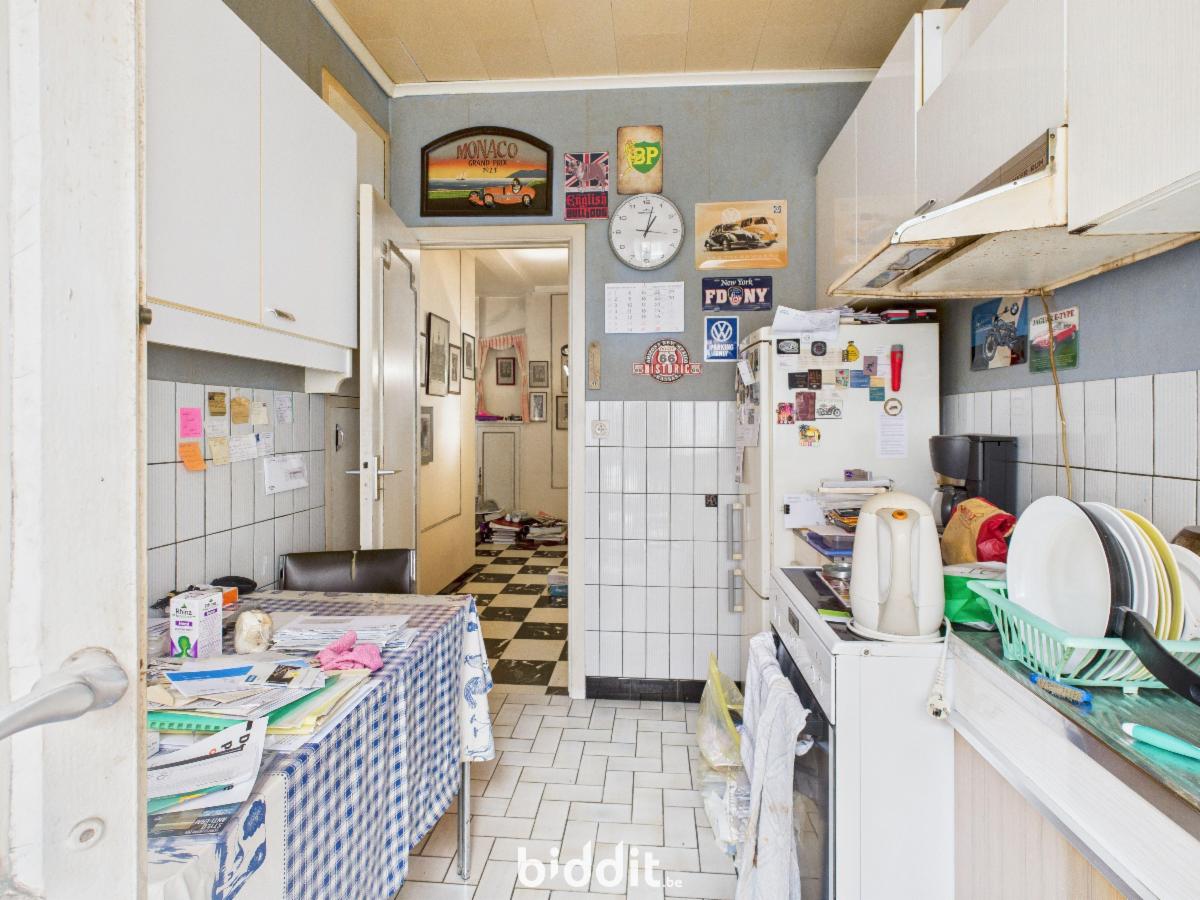 Omvattende inkomhal, keuken, living, badkamer, wc, 2 slaapkamers, kapsalon met massagecabine en klein winkeltje (heden living), terras voor-en achteraan, kelder nr 8 op ondergr. verd., garage nr 26 op ondergr. verd. N.g.k.i. 1.579€. Vrij na betaling en maximum 45 dagen na tekenen van PV van toewijzing. Woongebied. EPC G/979. Contr. elektr. niet conforme. Bezoeken : maandagen 5-12-19/1 van 12u30-14u30 en zaterdagen 10-17-24/1 van 16u30-18u30.
