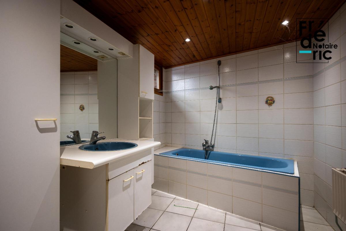 Au rez-de-chaussée, qui est en fait plus haut que la rue de quelques marches, deux entrées permettent d'accéder à la cuisine et au hall d'entrée. Il se compose d'un grand salon, une grande salle à manger, une cuisine et une salle de douche. A l'étage, d'un côté de l'escalier, deux grandes pièces en enfilade donnent accès à une toilette avec cabine de douche. De l'autre côté, une pièce donne accès à deux cellules. Une grande cave voutée se trouve sous le salon. Les extérieurs de la maison se composent d'une terrasse couverte où on retrouve la citerne à mazout, d'un petit bâtiment annexe renfermant la chaudière, et d'un jardinet.