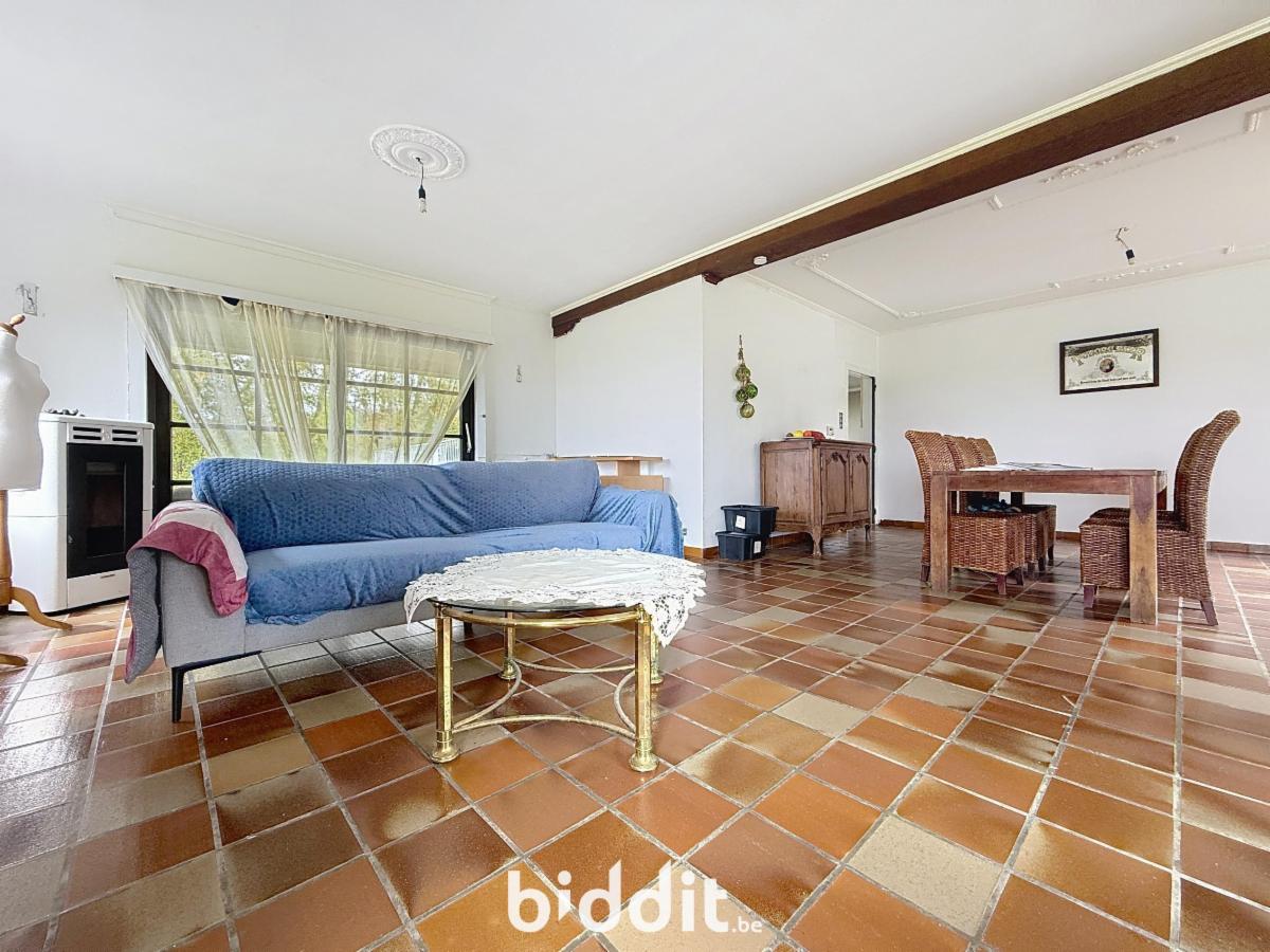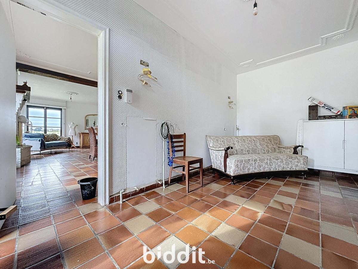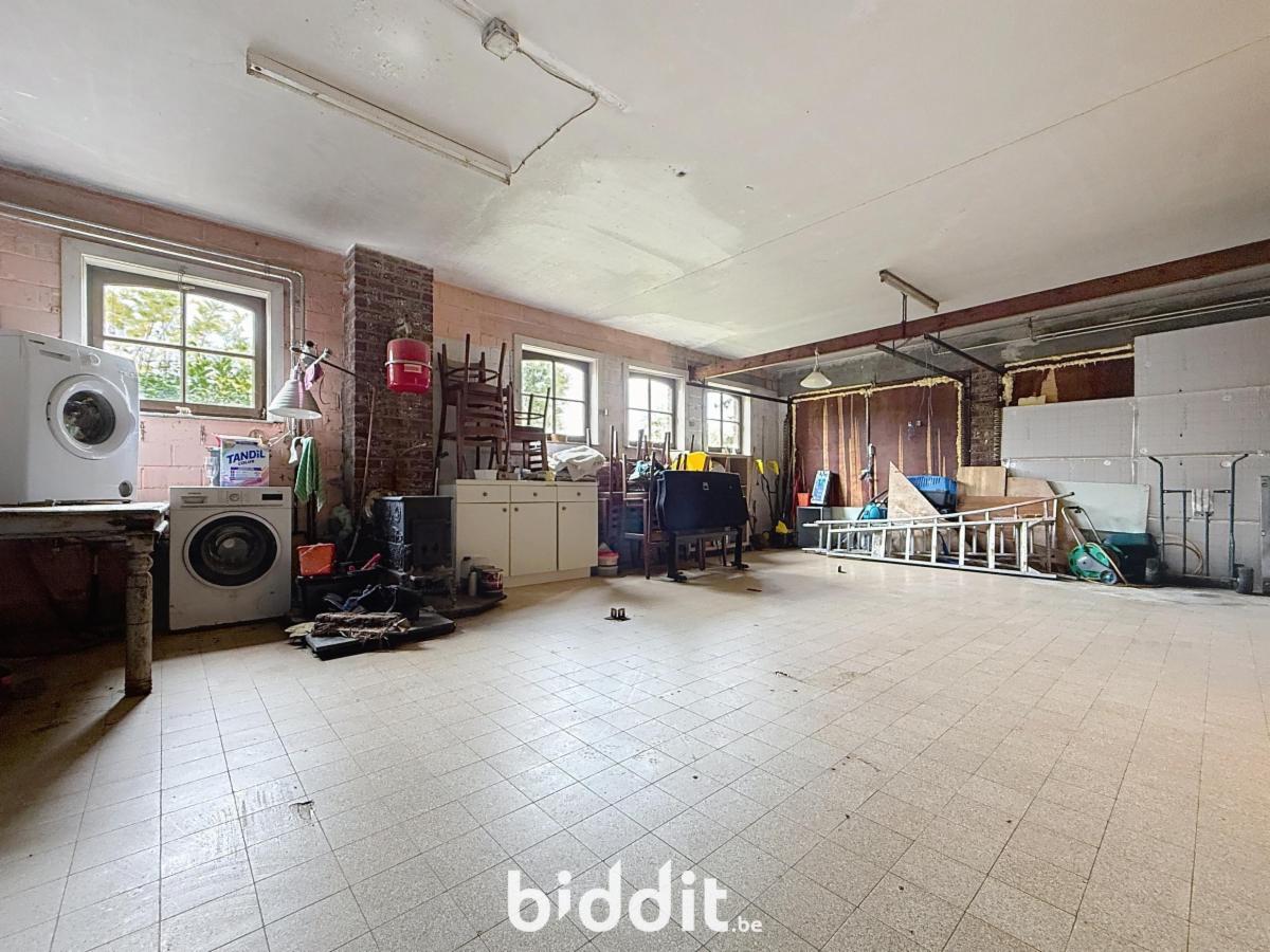 De woning beschikt over een dubbele garage en een ruime inkomhal met authentieke gebakken rode tegeltjes. Er is een zeer ruime living met een sfeervolle open haard. De aangrenzende keukenruimte biedt alle mogelijkheden om een moderne keuken te creëren. Op het gelijkvloers bevinden zich ook 3 slaapkamers en een badkamer. Op de 1e verdieping zijn er 2 extra slaapkamers, een woonkamer, keuken en badkamer, plus een kleine zolderruimte.