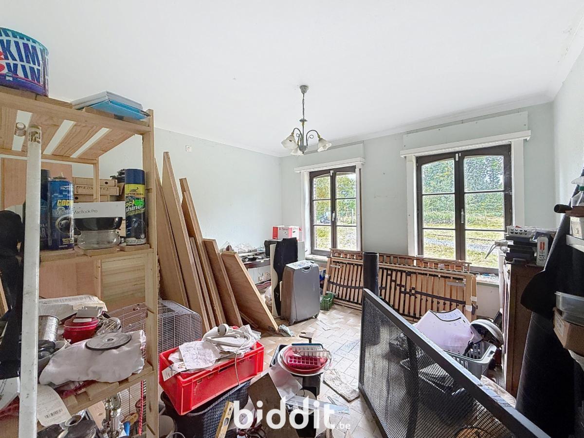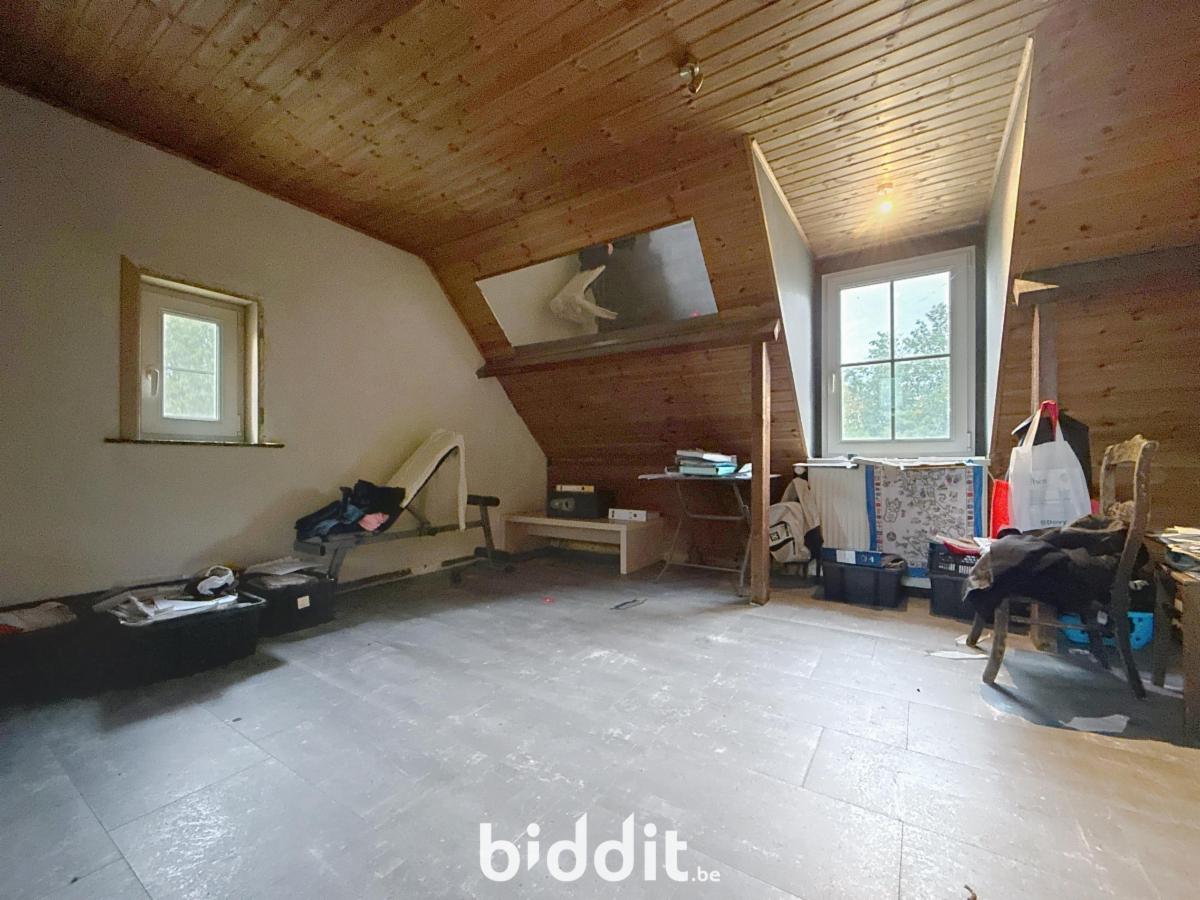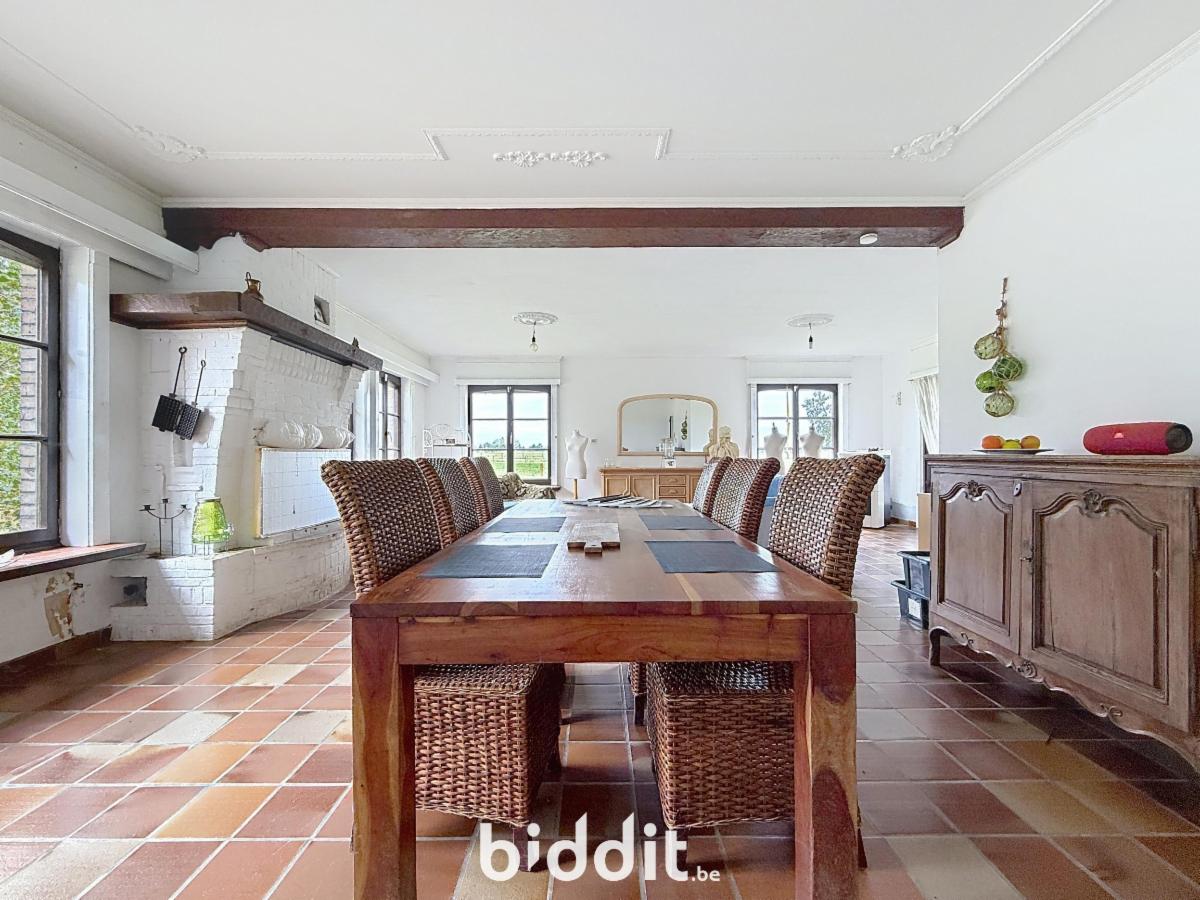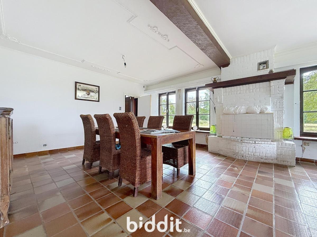 De woning beschikt over een dubbele garage en een ruime inkomhal met authentieke gebakken rode tegeltjes. Er is een zeer ruime living met een sfeervolle open haard. De aangrenzende keukenruimte biedt alle mogelijkheden om een moderne keuken te creëren. Op het gelijkvloers bevinden zich ook 3 slaapkamers en een badkamer. Op de 1e verdieping zijn er 2 extra slaapkamers, een woonkamer, keuken en badkamer, plus een kleine zolderruimte.