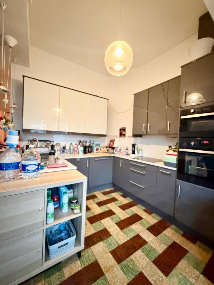 Immeuble de rapport composé comme suit : au rez-de-chaussée : hall d'entrée, garage, corridor menant à une buanderie et pièces de rangement; au 1er étage : appartement comprenant 1 chambre, cuisine, salle de bains, salon, salle à manger, terrasse et accès au jardin; au 2ème étage : appartement comprenant 2 chambres, cuisine, salle de bains, wc séparé, salon/salle à manger. Chauffage central gaz, double vitrage à l'arrière et simple vitrage à l'avant. Les 2 appartements sont actuellement loués.