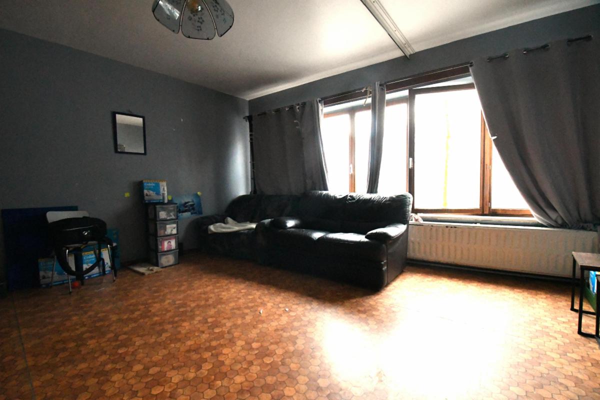 Building à rue avec passage en portique fermé d'un volet comprenant au rez-de-chaussée: un passage vers les garages implantés en arrière zone, des réduits et une cage d'escaliers vers les étages. Premier étage: séjour, hall d'entrée central, water-closet, placard avec prise pour machine à lessiver, salle de bain, cuisine semi-équipée, chambre à coucher et balcon arrière. Deuxième étage: idem. A l'arrière vingt garages donnés en location. L'appartement du 1er étage est donné en location depuis le 1er janvier 2021 pour une durée d'un an, renouvelable, moyennant un loyer de base de 462,00€/m. L'appartement du 2ème étage est libre d'occupation. Châssis bois simple vitrage. Chauffage central individuel pour chaque appartement avec chaudière murale. Salle de bain: chauffe-eau instantané au gaz. Cuisine: chauffe eau électrique. Certificats de conformité électrique délivrés le 22.04.2016. La plupart des boxes de garage sont donnés en location pour 50,00€/mois.Nombreux commerces (Lidl en face) et arrêts de transports en commun à proximité immédiate.