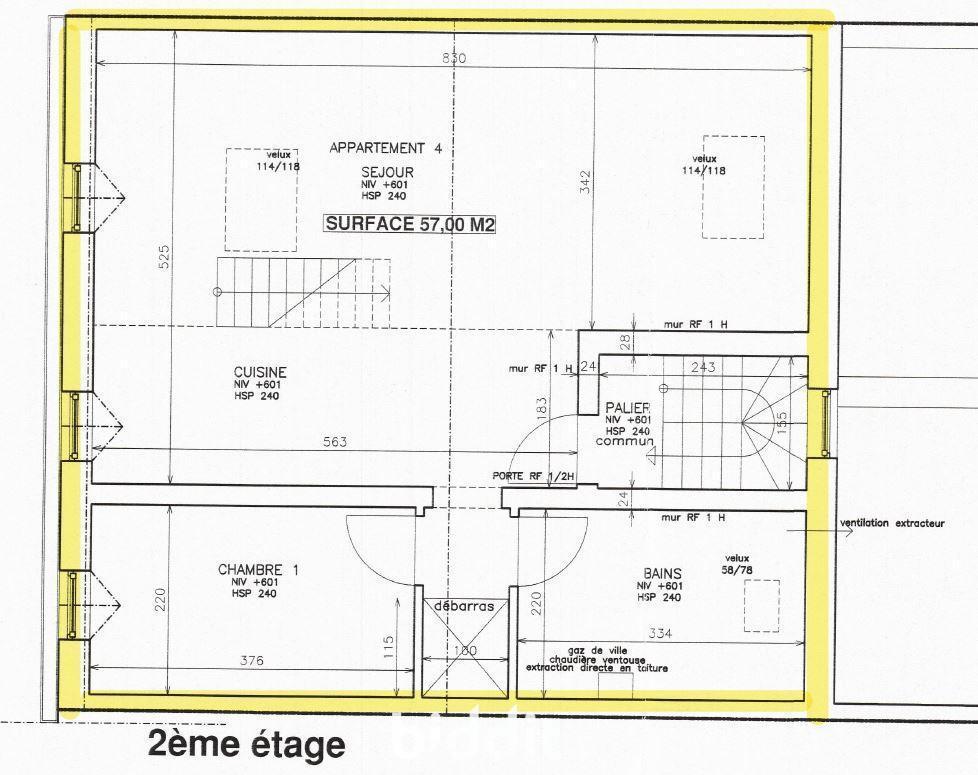 - Logement du 2ème étage, n°73C : Hall d’entrée, un séjour avec un coin cuisine, une chambre, une salle de bains et un débarras, d’une surface de 57 mètres carrés, et avec une mezzanine.