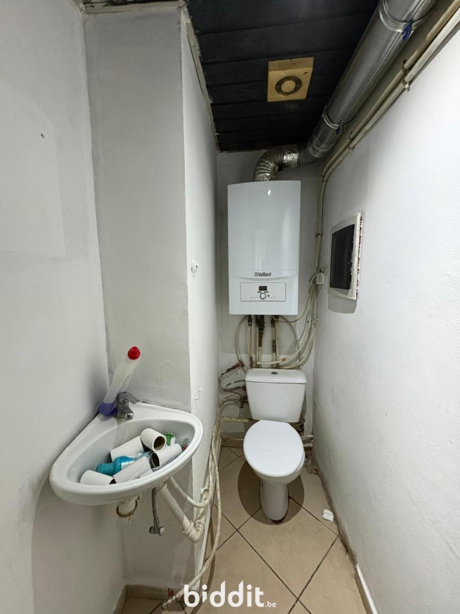 Immeuble de rapport comprenant 3 appartements (rez / étage 1) et 1 garage intérieur et 4 garages dans la cour. Compteurs séparés. Loyer mensuel potentiel min. 2.000 € - Un appartement du 1er étage est loué 600€, le bail a probablement été présenté à l'administration de l'enregistrement. Citerne à mazout de grande contenance inutilisée à neutraliser.