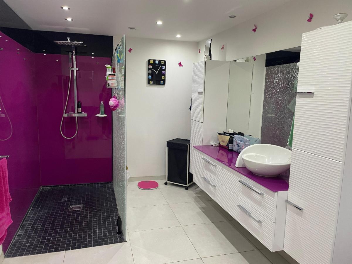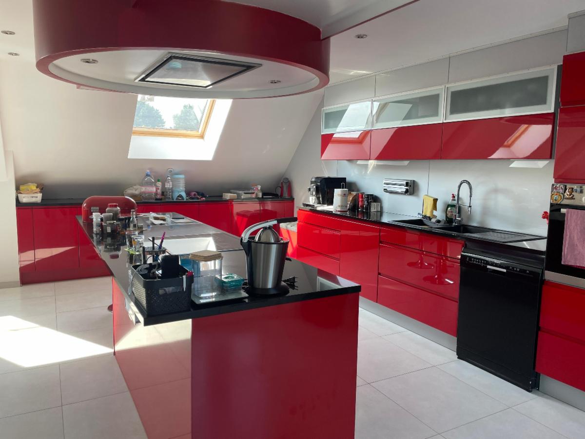 A l’étage, une grande pièce de vie avec cuisine équipée (frigo encastrable + frigo américain, lave-vaisselle, four, taque induction, hotte à charbon), une chambre parentale avec dressing, une deuxième chambre, un WC séparé, une salle-de-bain.