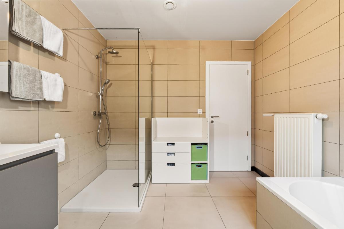 badkamer is compleet uitgerust met zowel een ligbad als een aparte inloopdouche — comfort gegarandeerd. Daarnaast is er nog een handige berging op de verdieping alsook een afzonderlijk toilet en een praktische zolder.