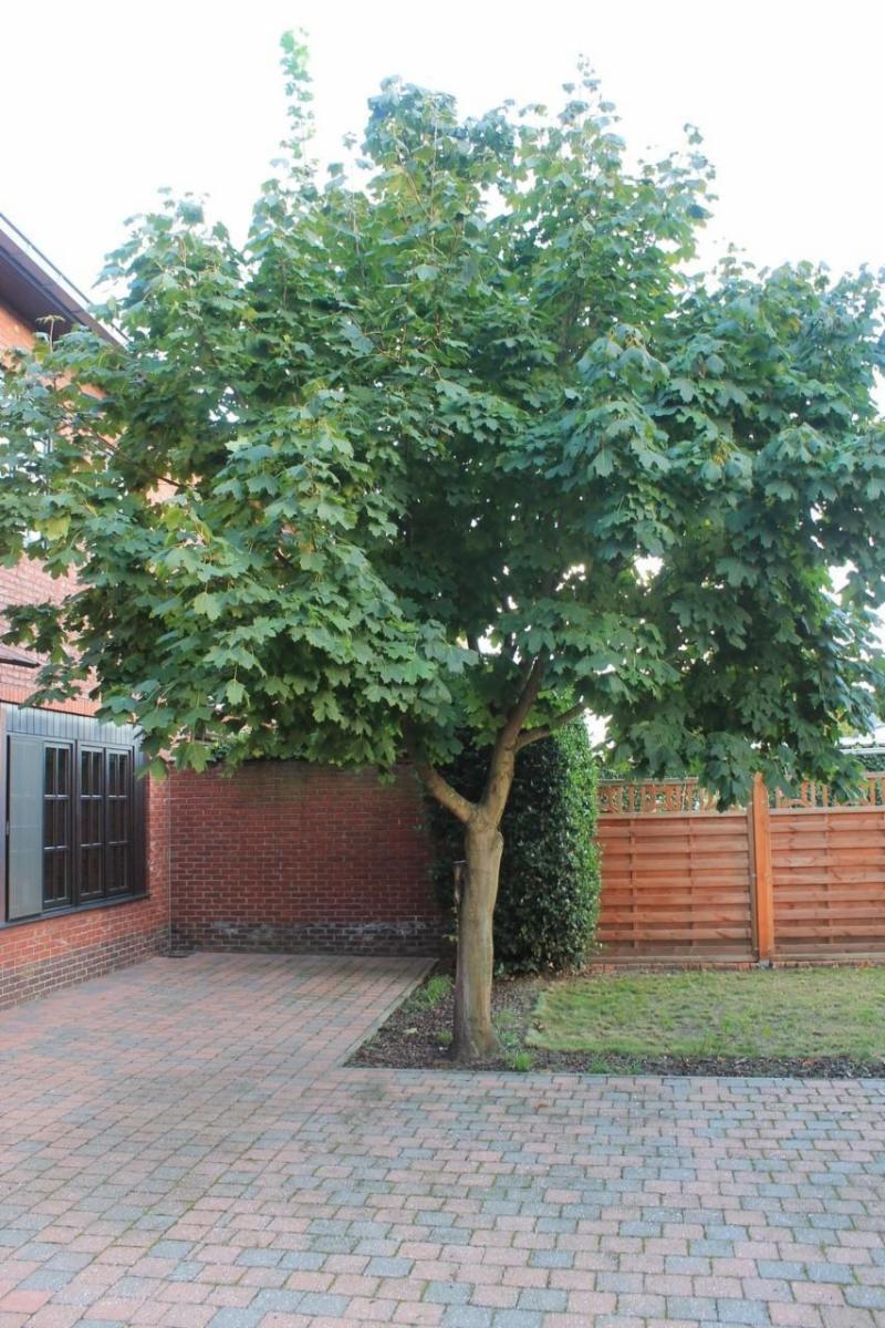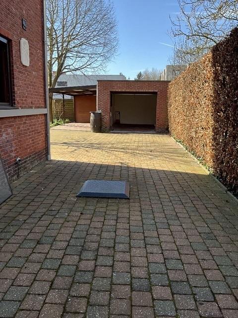 Het perceel is grotendeels aangelegd met grasperk en beplanting, wat zorgt voor een aangename buitenbeleving. Vooraan de tuin werd een automatische houten poort geplaatst, met aan de linkerzijde een bedieningsklavier. Achteraan het perceel bevindt zich een garagebox met automatische poort. Bovendien beschikt de woning over een ruim terras, een grote oprit met voldoende parkeermogelijkheden en een praktische carport.