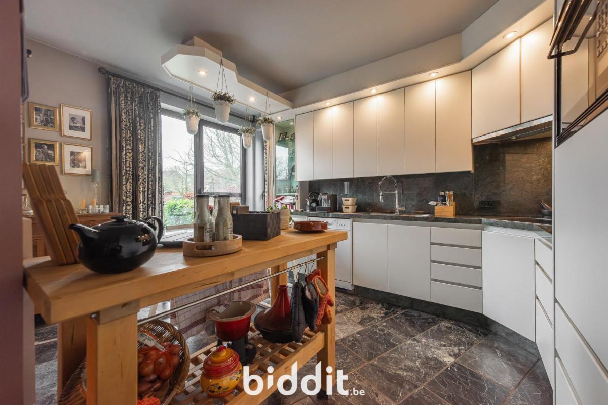 Gelijkvloers: inkomhal met apart gastentoilet, woonkamer, eetkamer en ingerichte keuken;