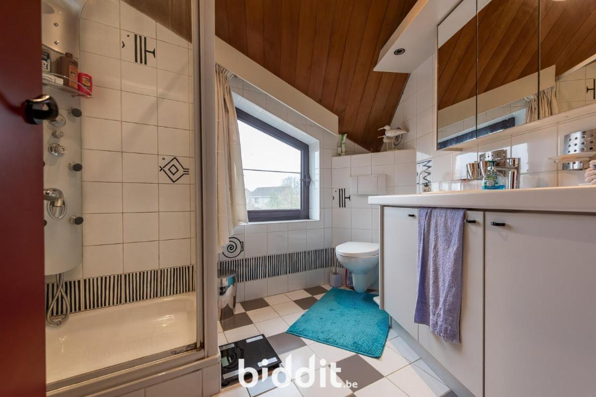 Op de 1e verdieping bevinden zich: 2 slaapkamers, bureau, toilet en badkamer met douchecabine, lavabomeubel en toilet;